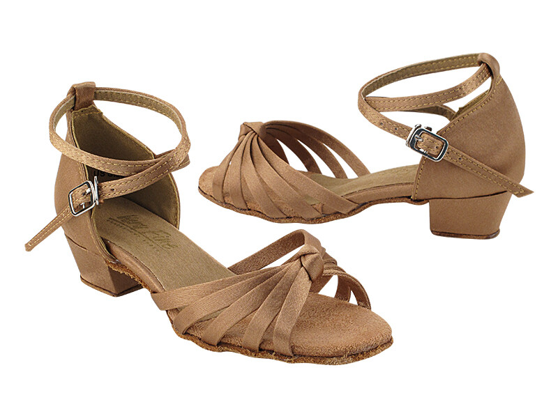 Girl's Youth Brown Satin Dance Shoes 1.5 Heel Latin Salsa Ballroom Tango 6005G