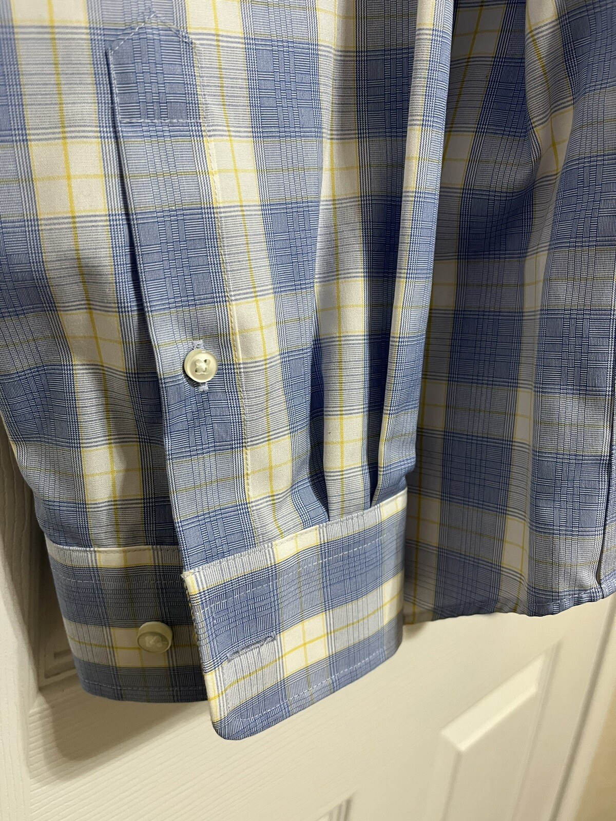 EGARA Button Down Long Sleeve Shirt Non-Iron Cotton Blue/Yellow Plaid Size XXL