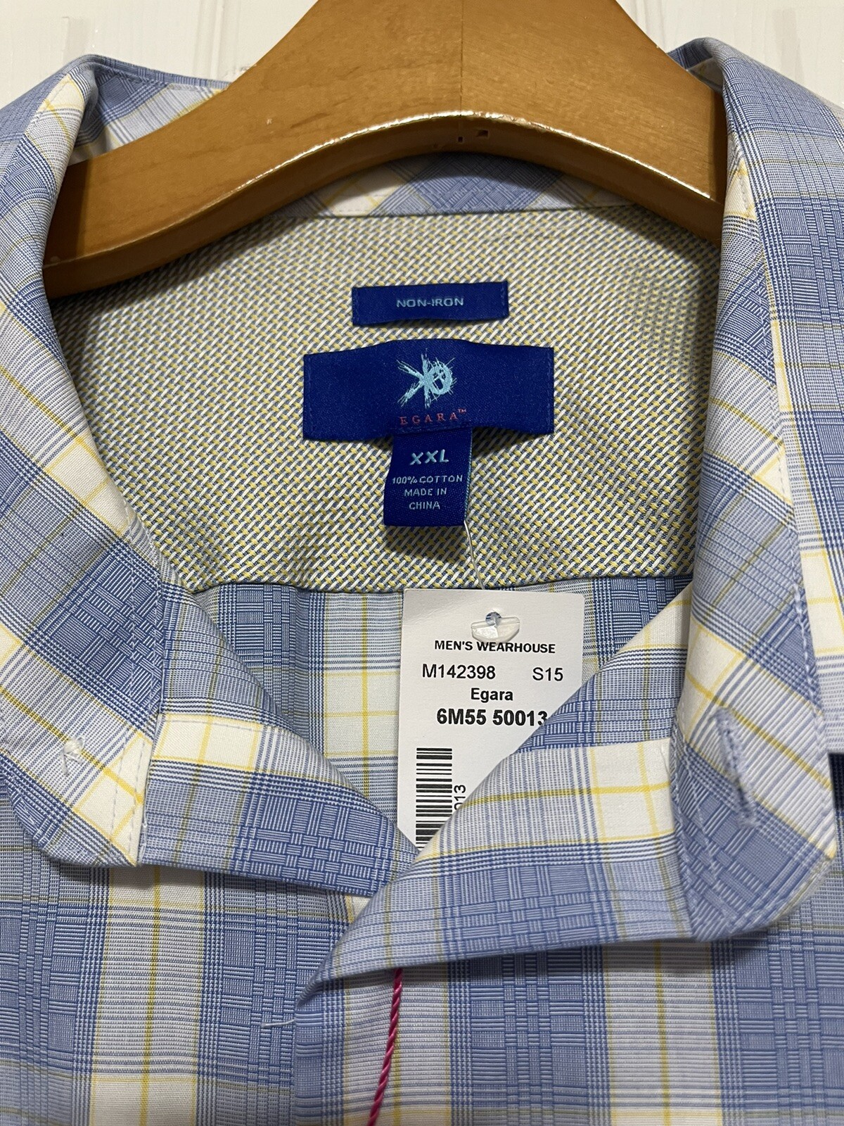 как выглядит EGARA Button Down Long Sleeve Shirt Non-Iron Cotton Blue/Yellow Plaid Size XXL фото