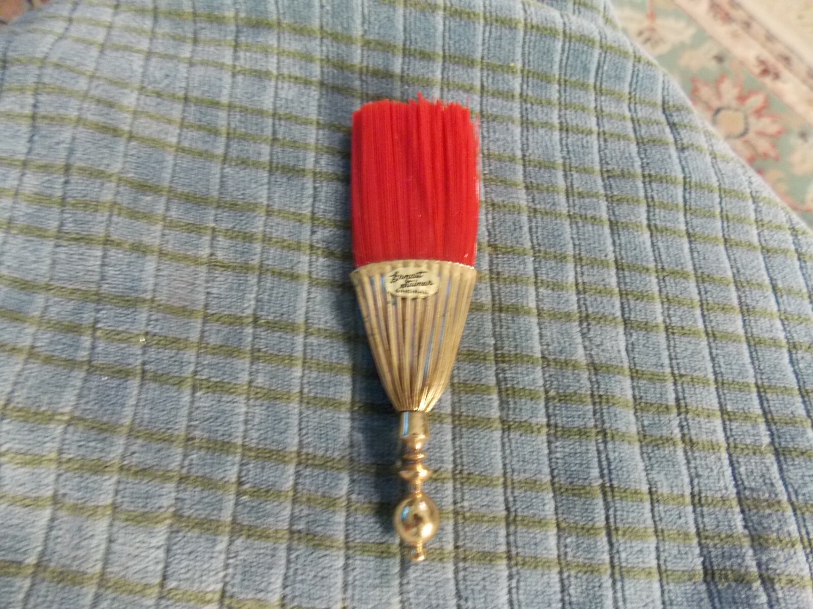 как выглядит Vintage ERNEST STEINER Miniature Crumb Lint Brush Gold Tone 3 1/4" VG фото