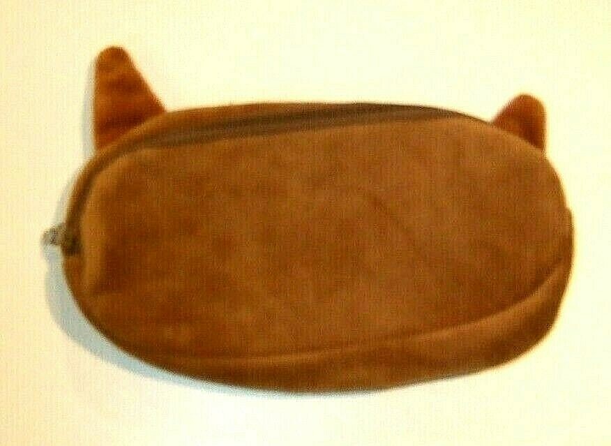 Soft Plush Brown Cat Kitten Zippered Pencil Case - NEW 9