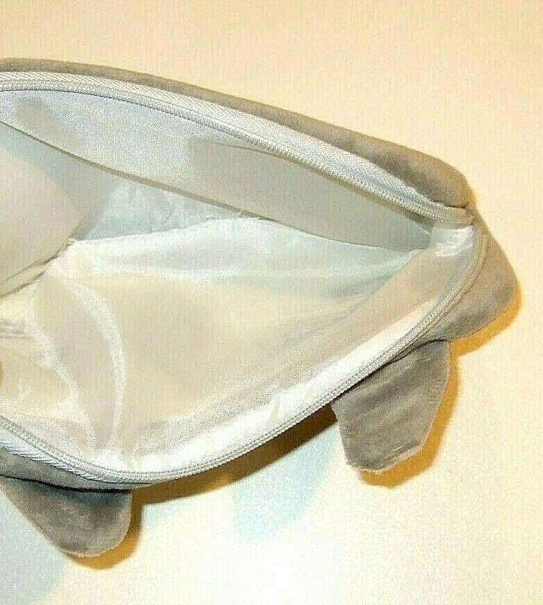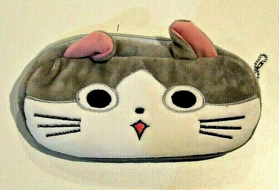 Soft Plush Gray White Cat Kitten Zippered Pencil Case - NEW 12