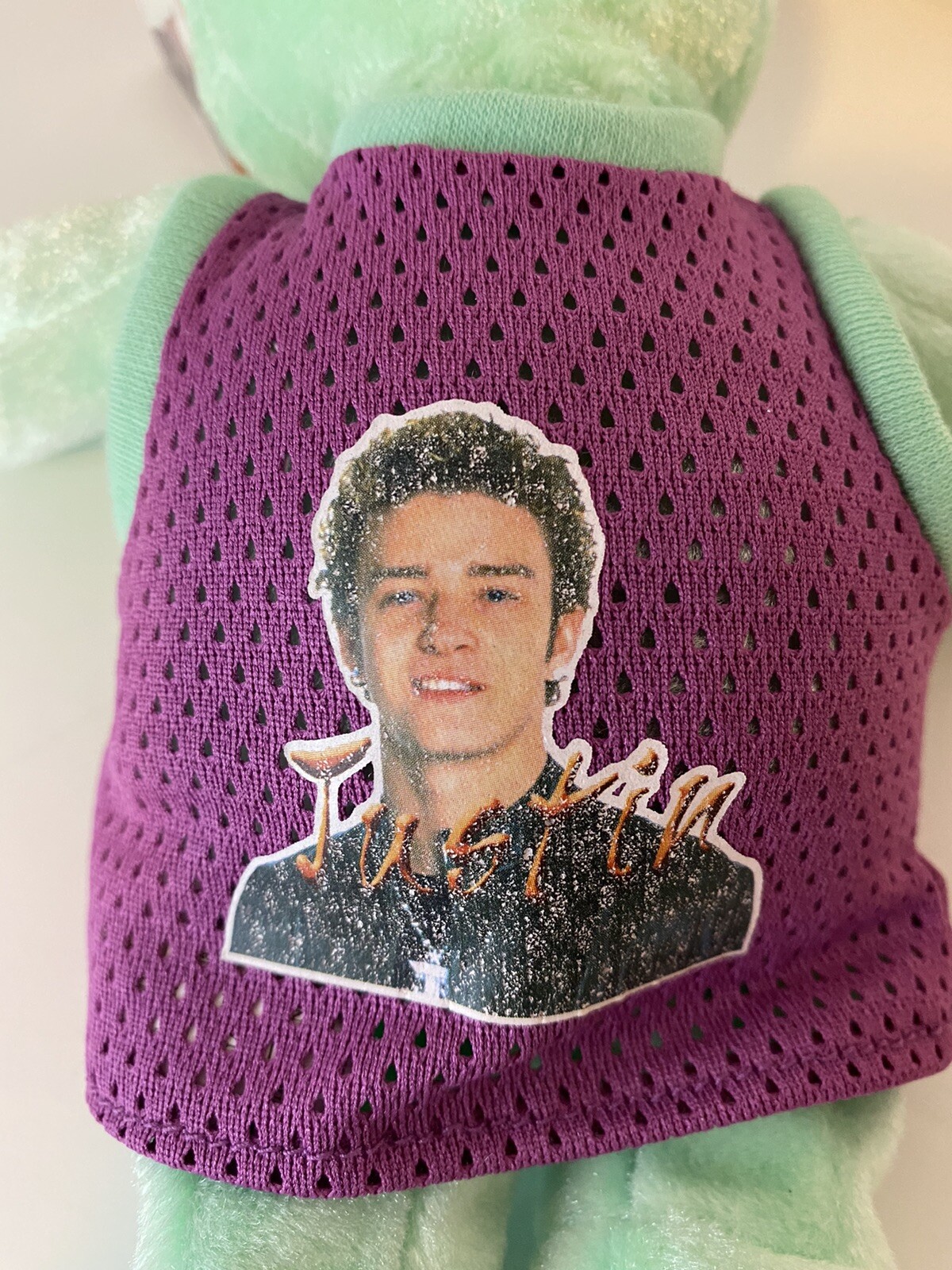 • NSYNC Green Justin Timberlake Sports Collectible Bear With Tags Purple Jersey