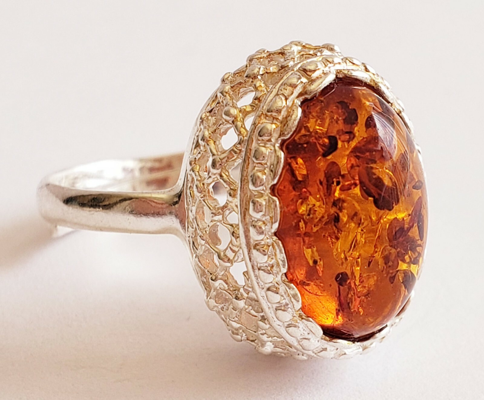 BALTIC AMBER 100 925 STERLING SILVER RING NATURAL Honey Amber 4.1 gram SZ 6