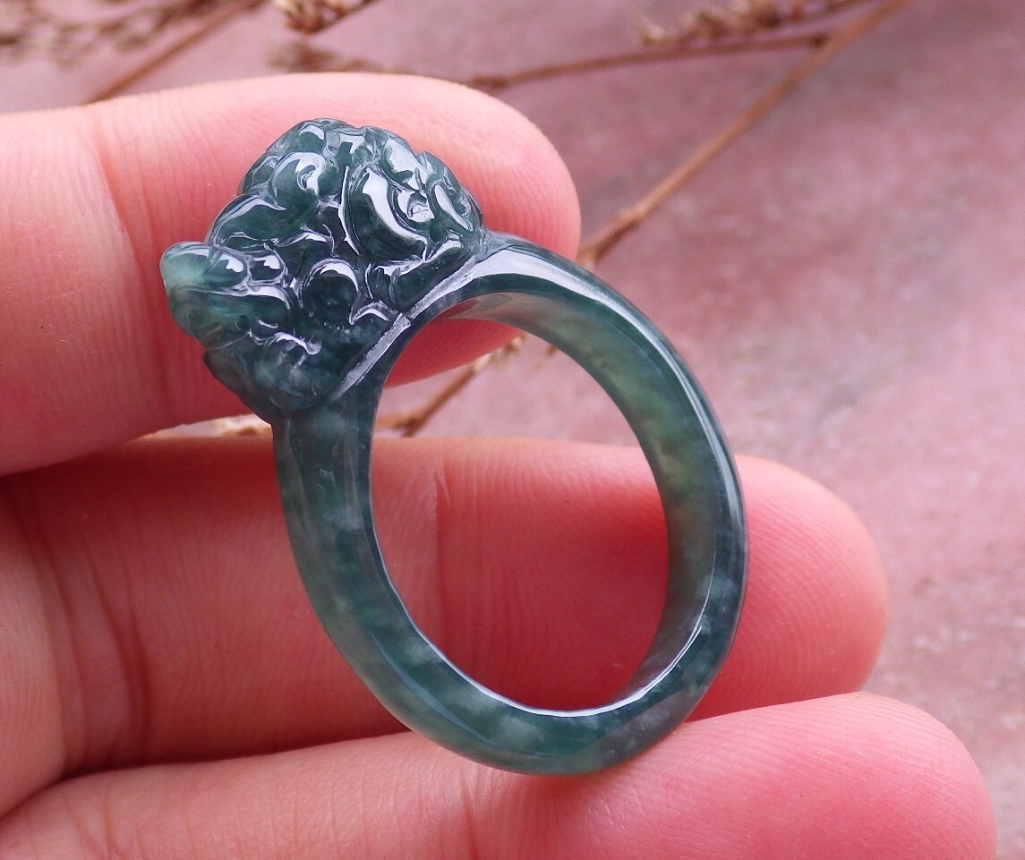 Certified Green Natural A JADE Jadeite Dragon Pi Xiu RING USA. 8.75 562400