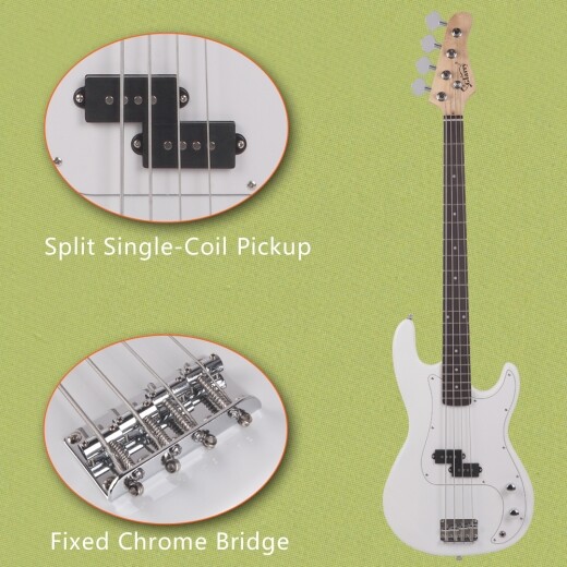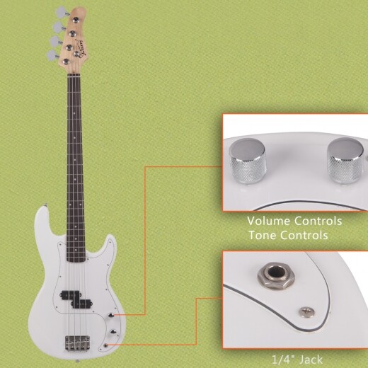 Glarry GP Electric Bass Guitar White w/ 20W Amplifier