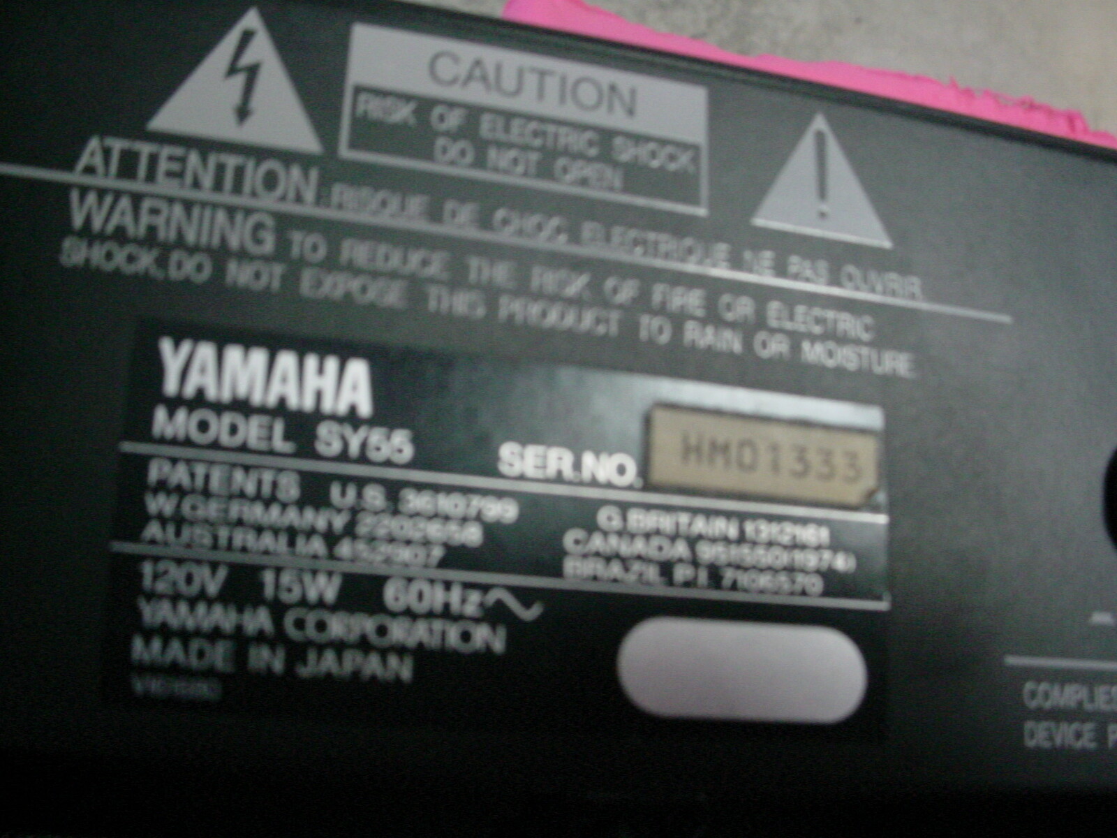 YAMAHA SY55 Synthesizer Electric Keyboard SKB Hardshell Plastic Case NR 1