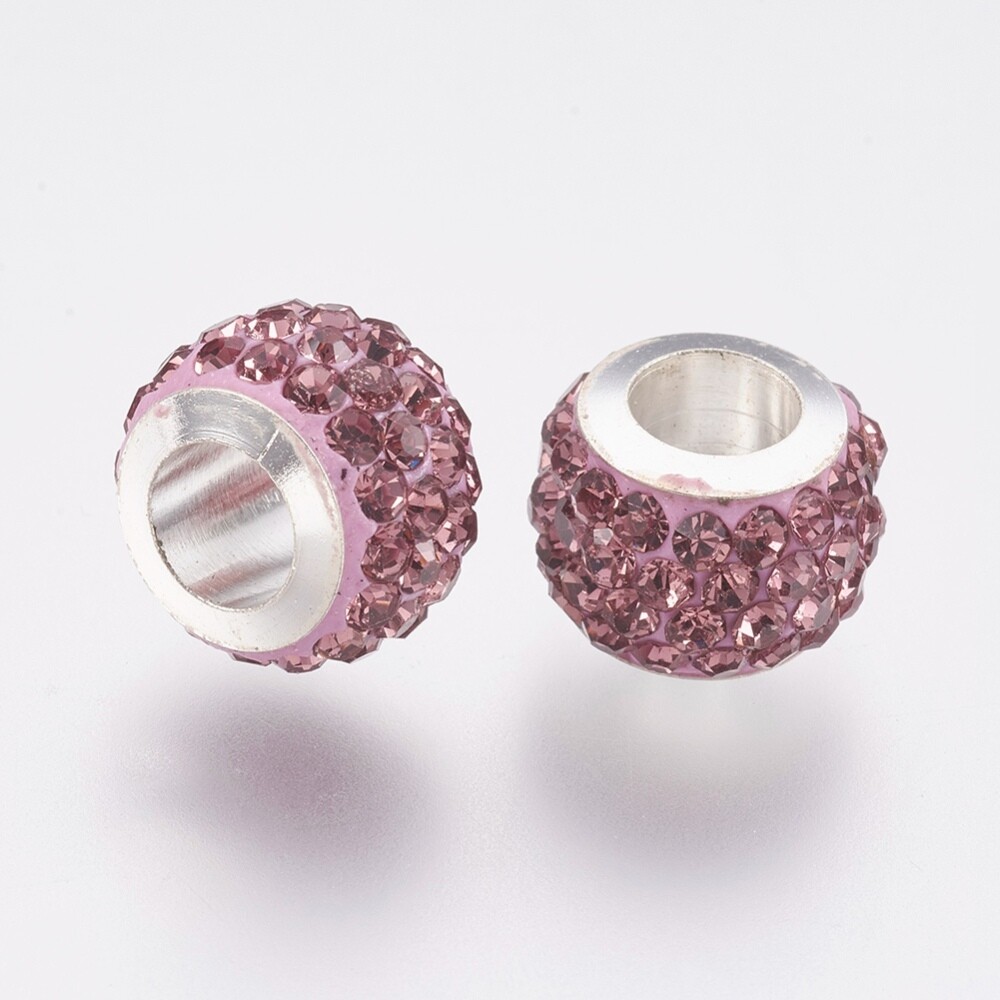 10Pcs 304 Stainless Steel European Beads with Polymer Clay Rhinestone 11x7.5mm
