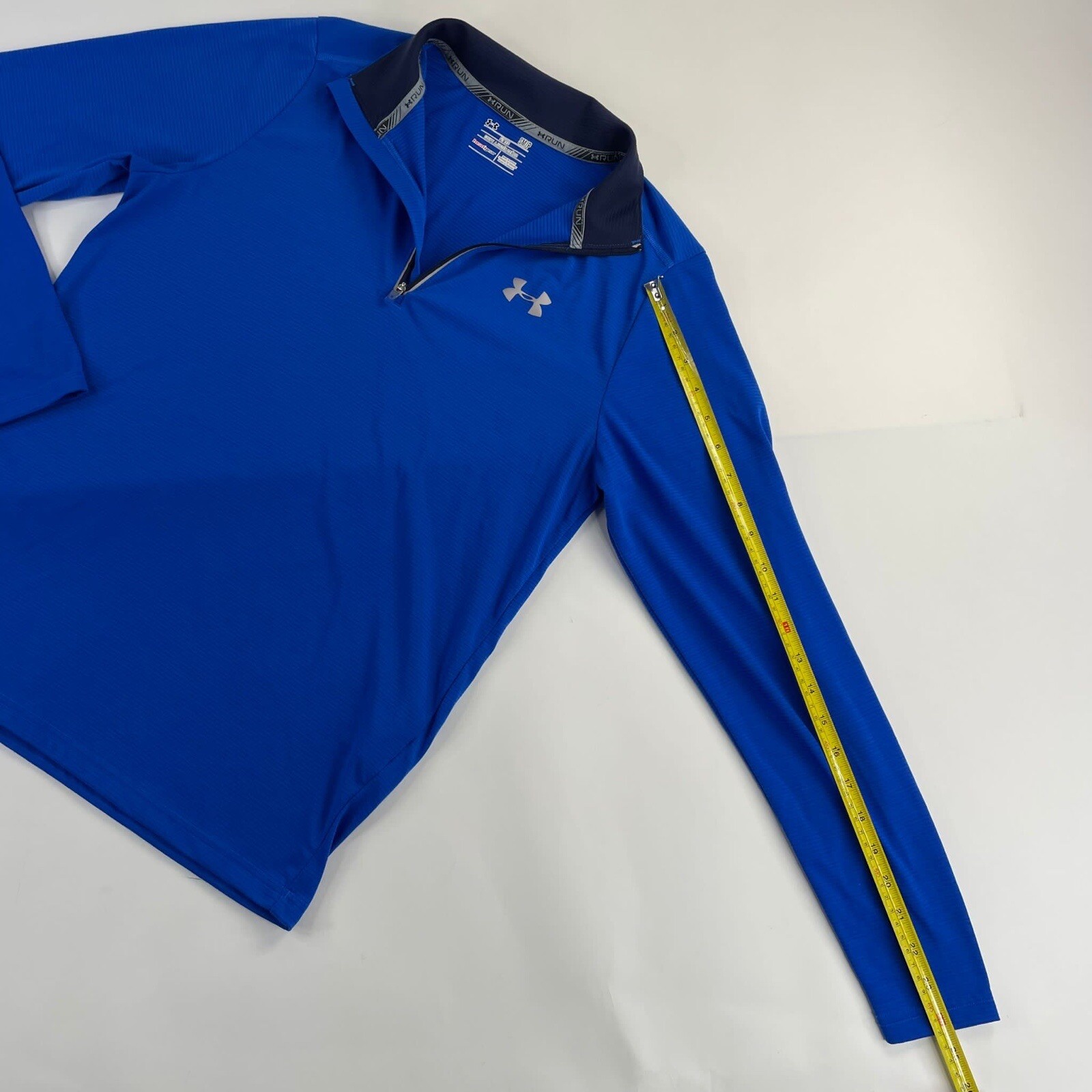 как выглядит Under Armour Jacket Small Blue Mens Run Fitted Heatgear 1/4 Zip Long Sleeve Used фото