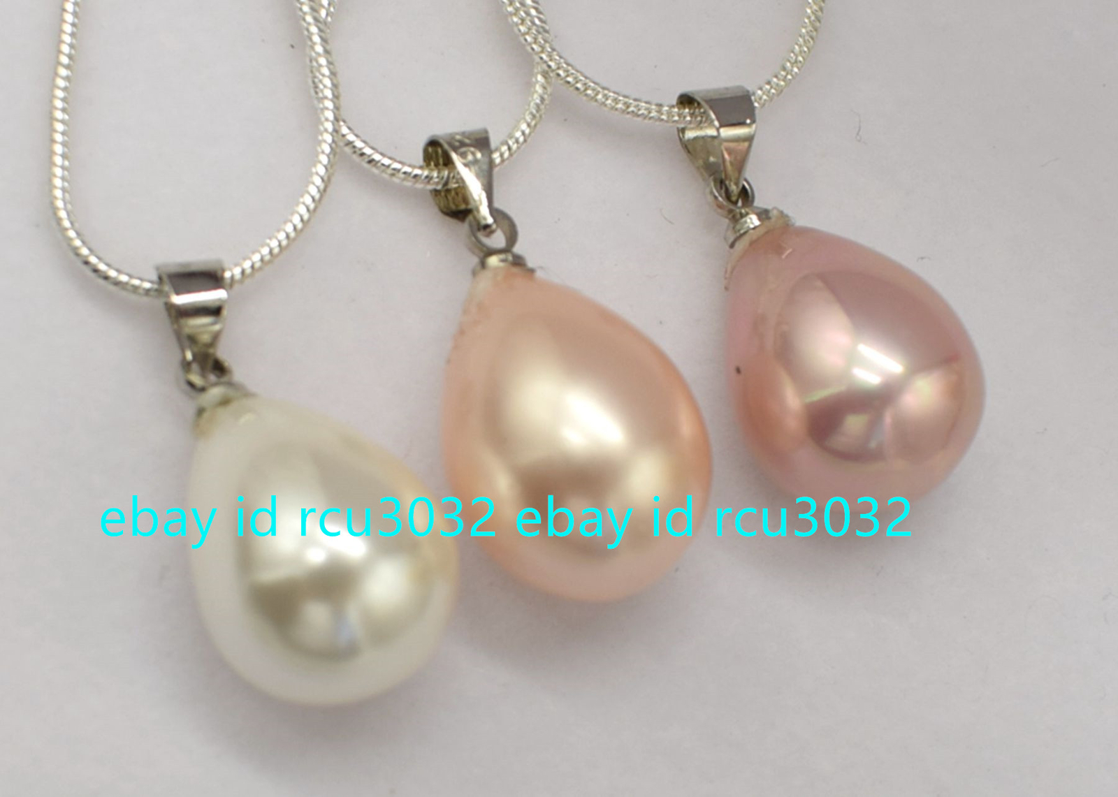 3 Pcs Natural 12x16mm White Pink Purple South Sea Shell Pearl Pendant Necklace