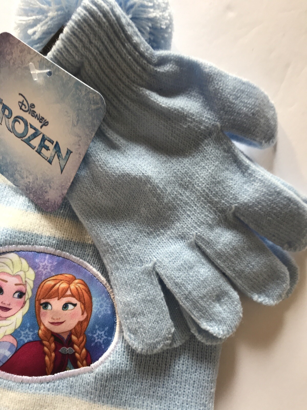 как выглядит Disney FROZEN Toboggan Winter Hat Glove Set Icy Blue Stripe PomPom ANNA/ELSA NWT фото