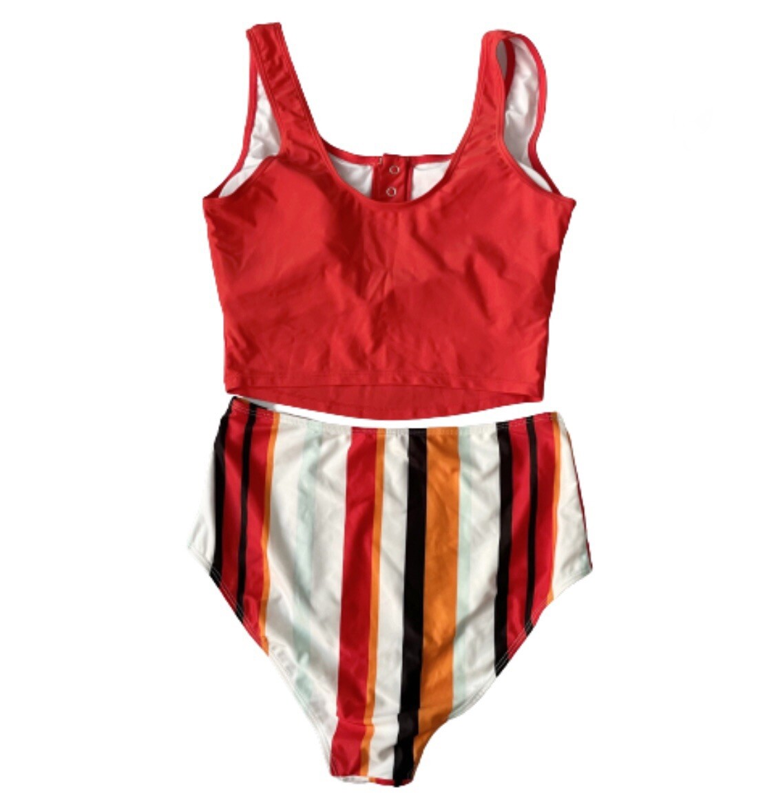 NWOT Two Piece High Waisted Tankini Swimsuits Snap Up Size M