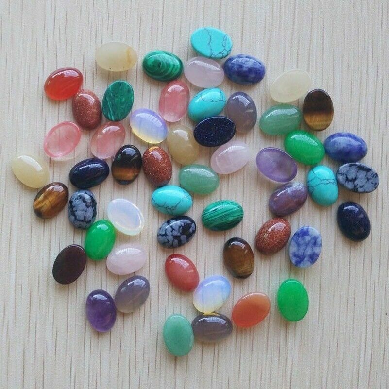 как выглядит Wholesale 50pcs/lot natural gemstone mixed Oval CAB CABOCHON stone beads 10x14mm фото