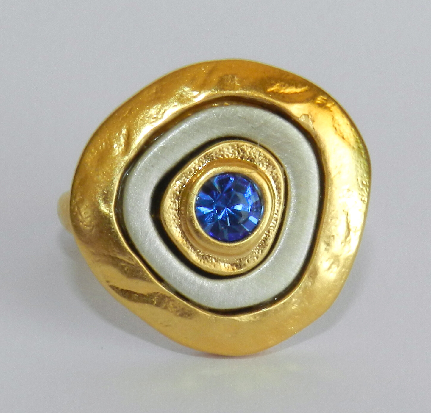 как выглядит Art Designer Silver 925 Gold 24K Plated 3 Circles Abstract Ring Blue Stone Sz 8 фото