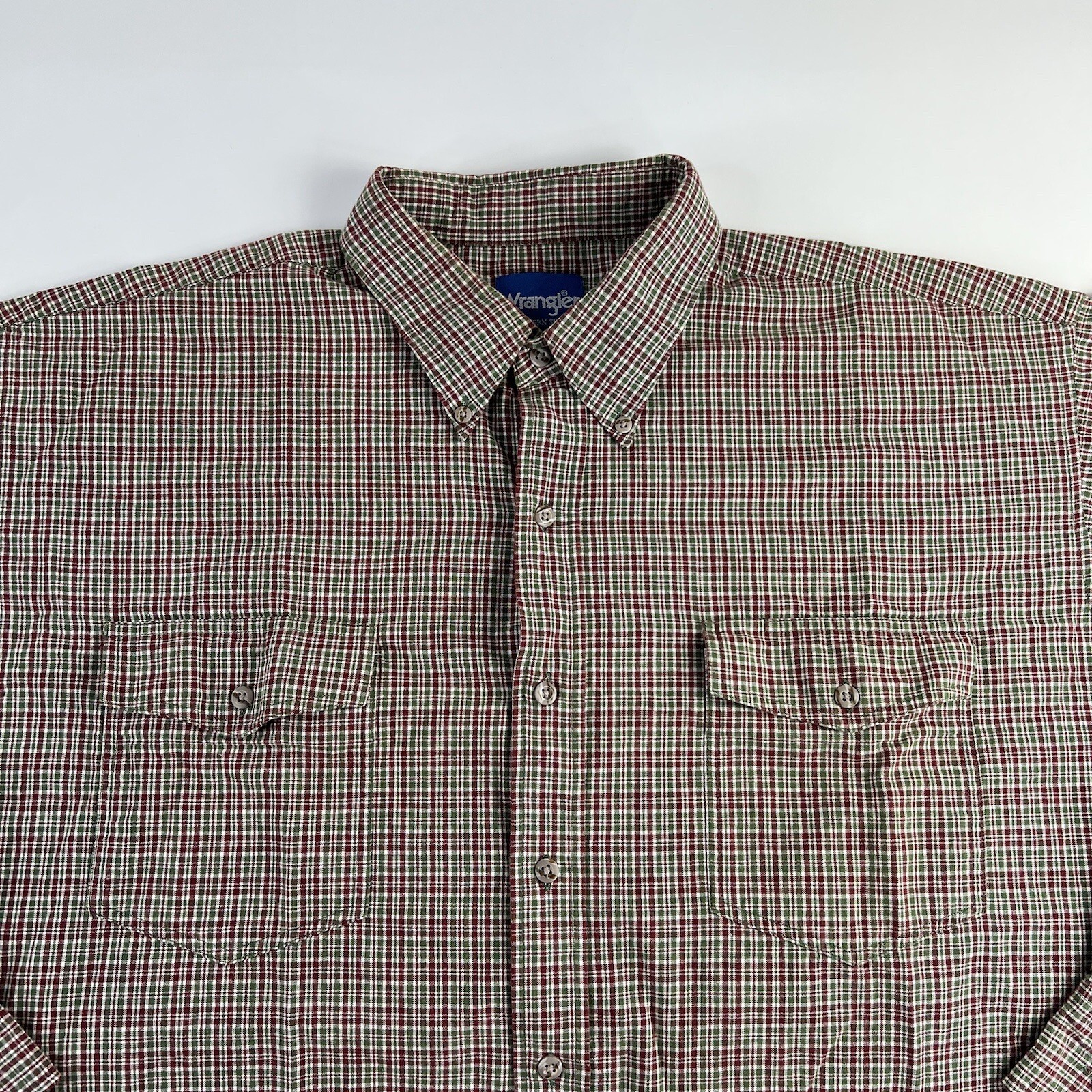 Wrangler Western Shirts XL Green Red Men Button Down Pocket Long Sleeve Used 14