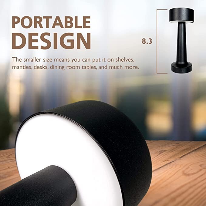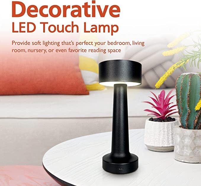 BerShim Portable Table Lamp with Touch Sensor 3-Levels Brightness, Rechargeable.