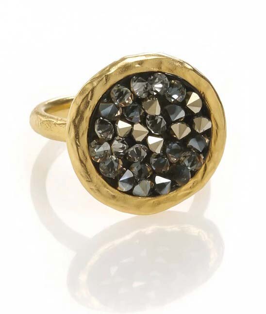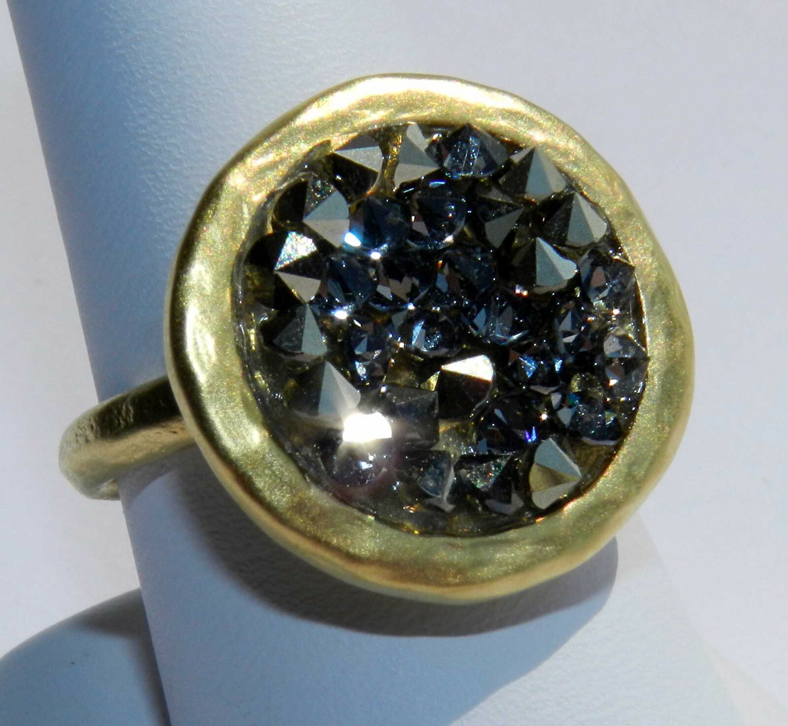 Designer Signature Yellow Gold 24K Plated Round Ring Crystal Rock Stones Sz 8