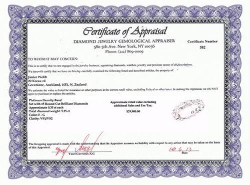 Certification/Grading: certificate of appraisal