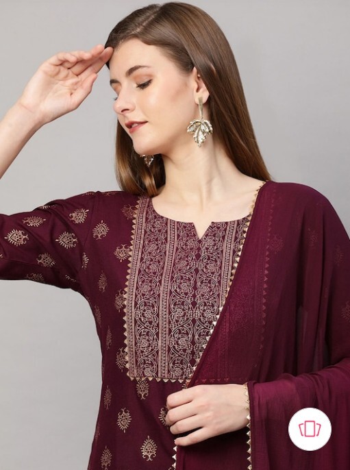 Indian Pakistani Women Burgundy Kurta/Kurti with Trousers Dupatta