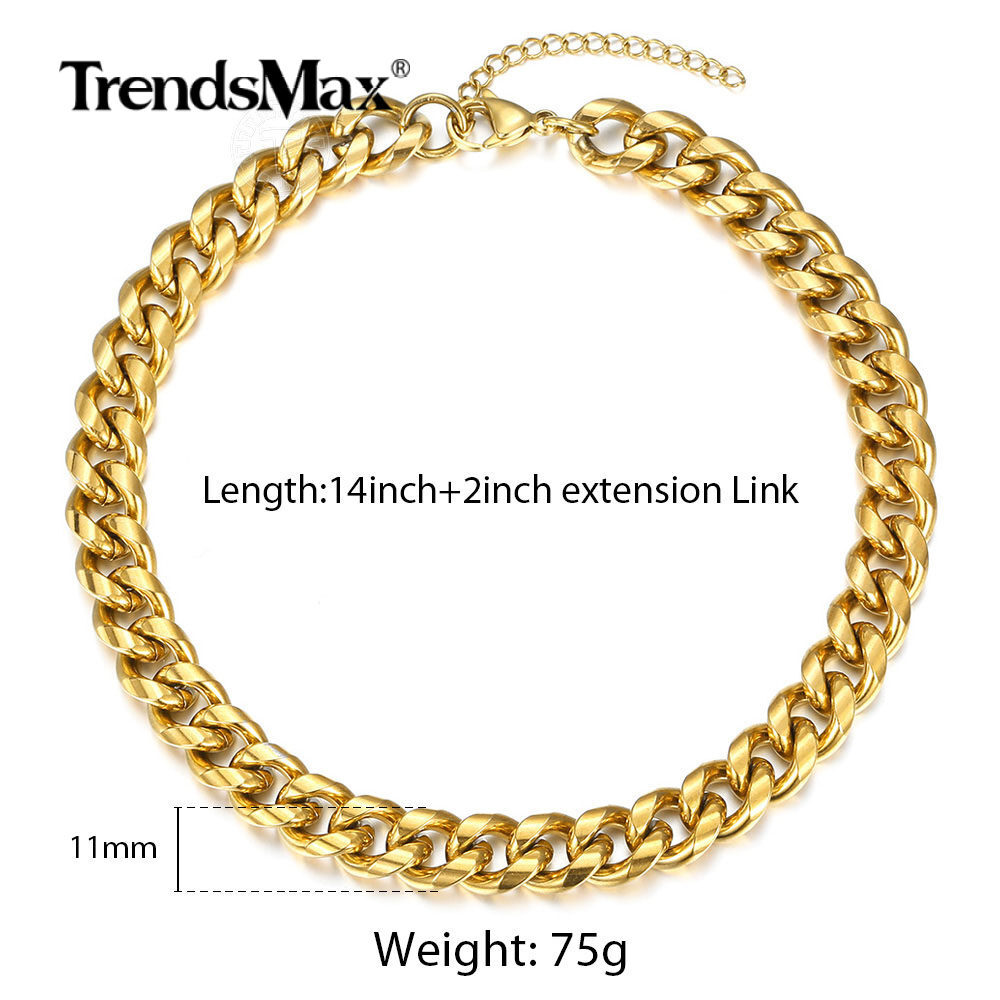 11mm 14 Gold Plated Curb Chain Choker Necklace Stainless Steel for Women Girl
