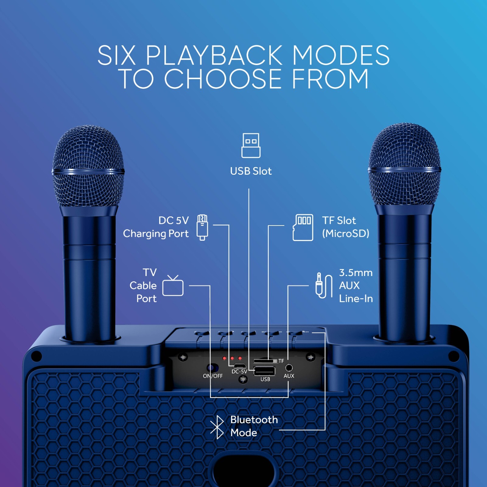 MASINGO Karaoke Machine with 2 Wireless Microphones, Portable Bluetooth Speakers