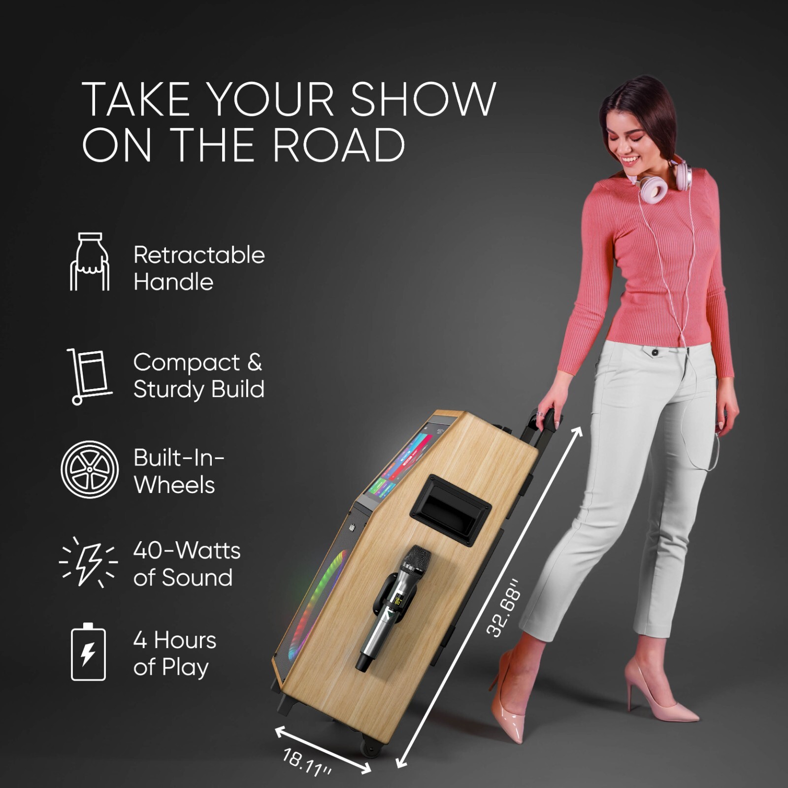 Особенности: LED Lights, 2 Wireless Microphones, Android 7.1