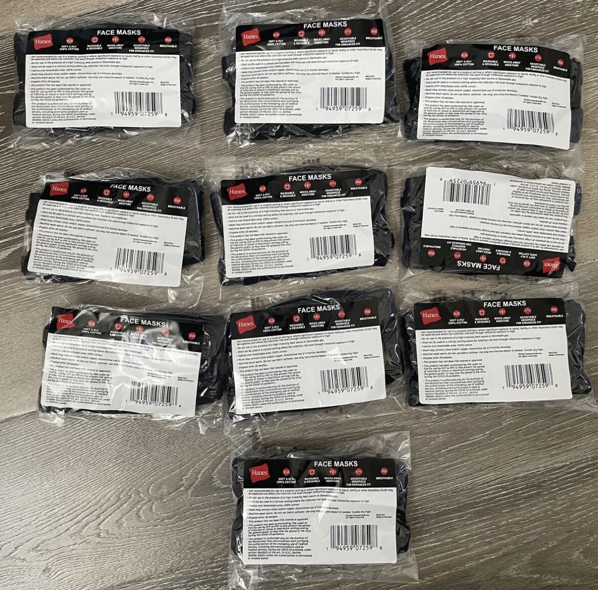 Hanes Reusable Cotton Black Face Mask 500 Pack Washable Bulk Masks Bundle