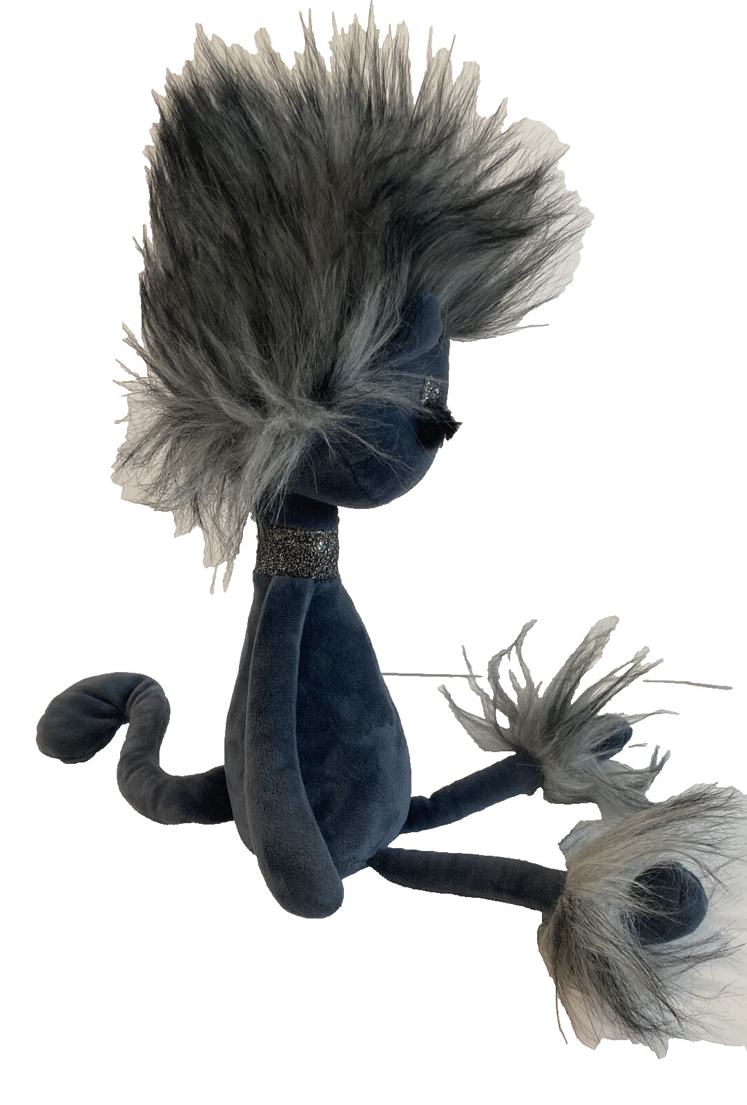 JellyCat London Plush Kitty Cat Charcoal Gray Fluffy Hair with Tush Tags 12