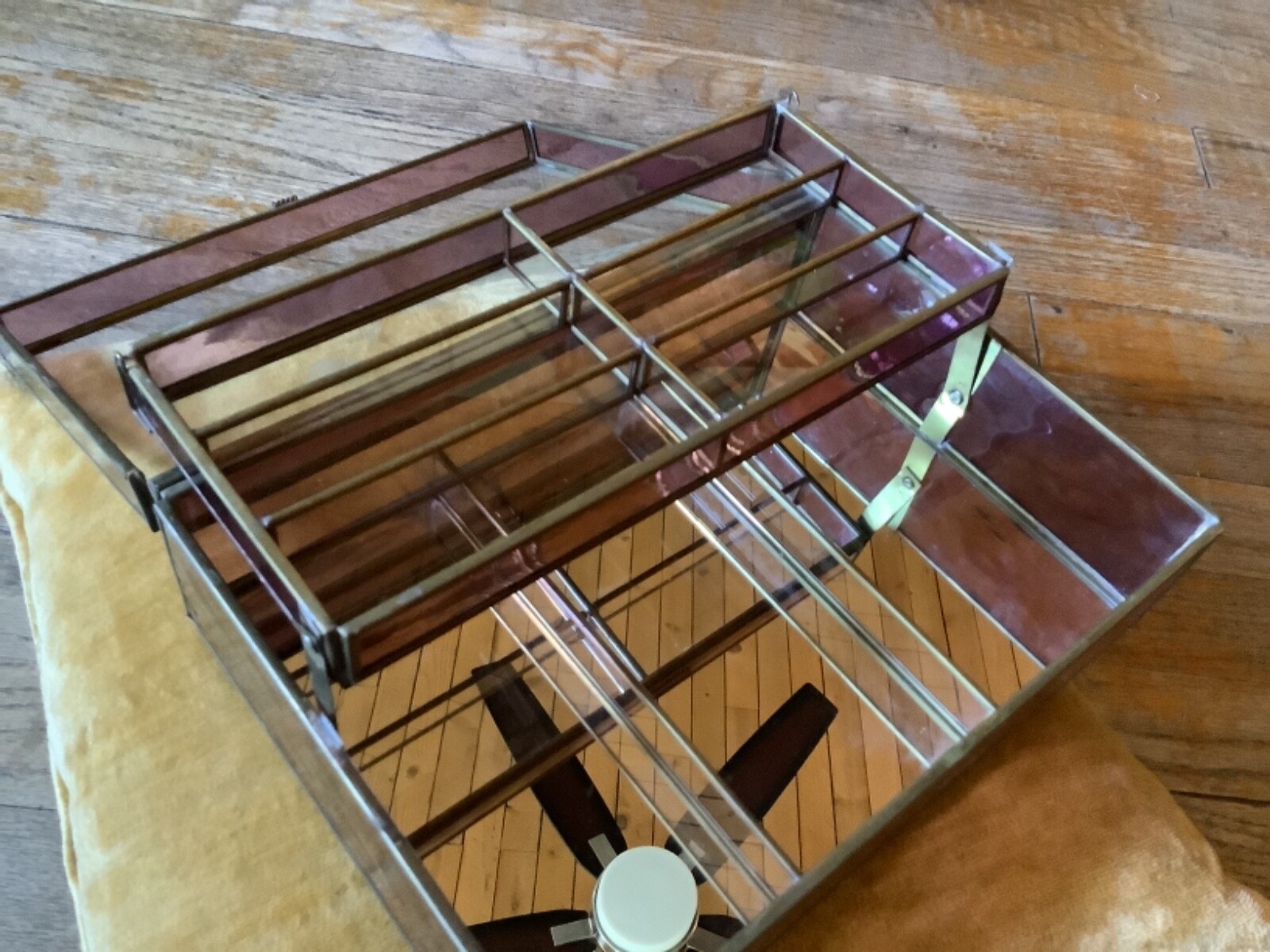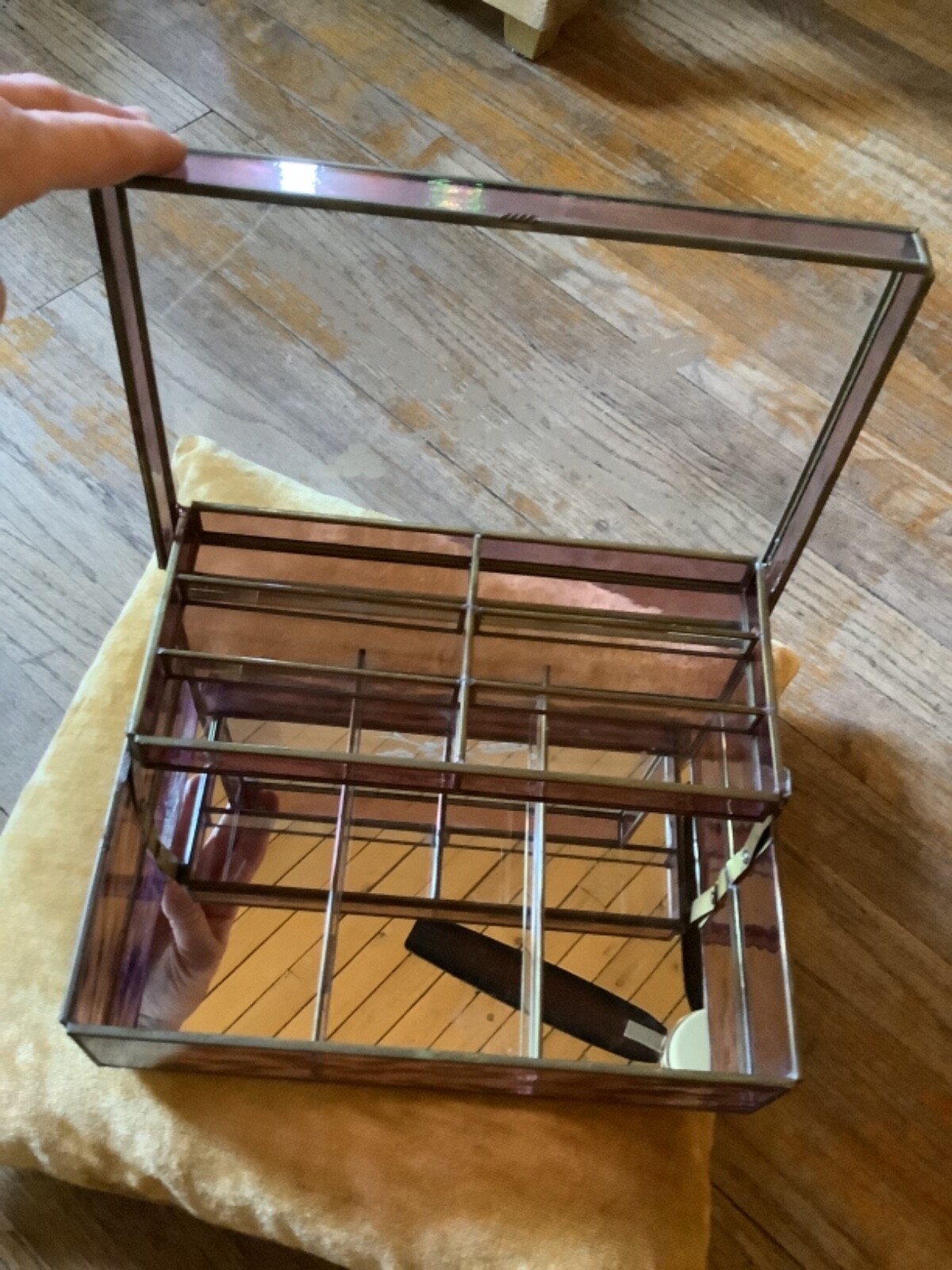 • VINTAGE GLASS AND BRASS JEWELRY BOX Light Purple chest trinket box etched