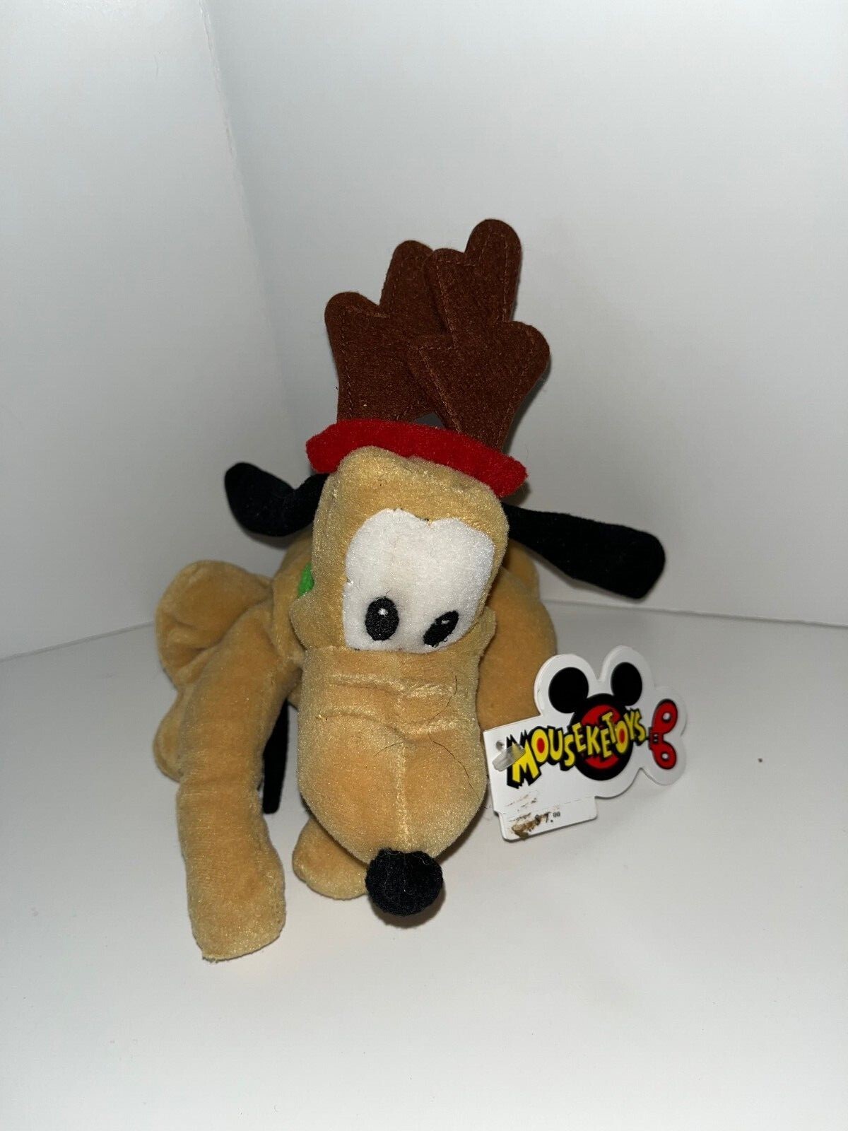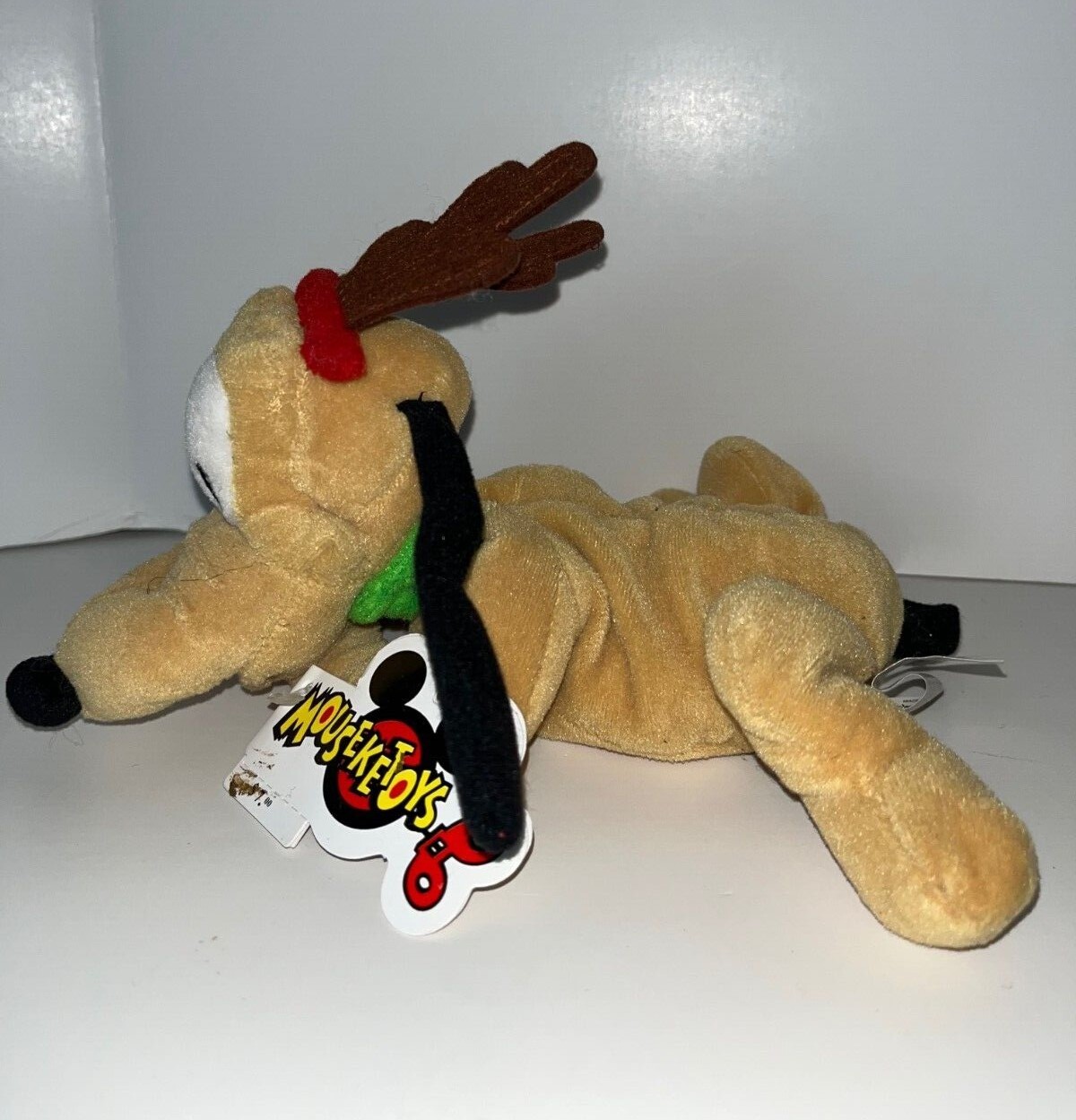 Disney Mouseketoys Pluto Reindeer Antlers Christmas 9 Plush Bean Bag Toy
