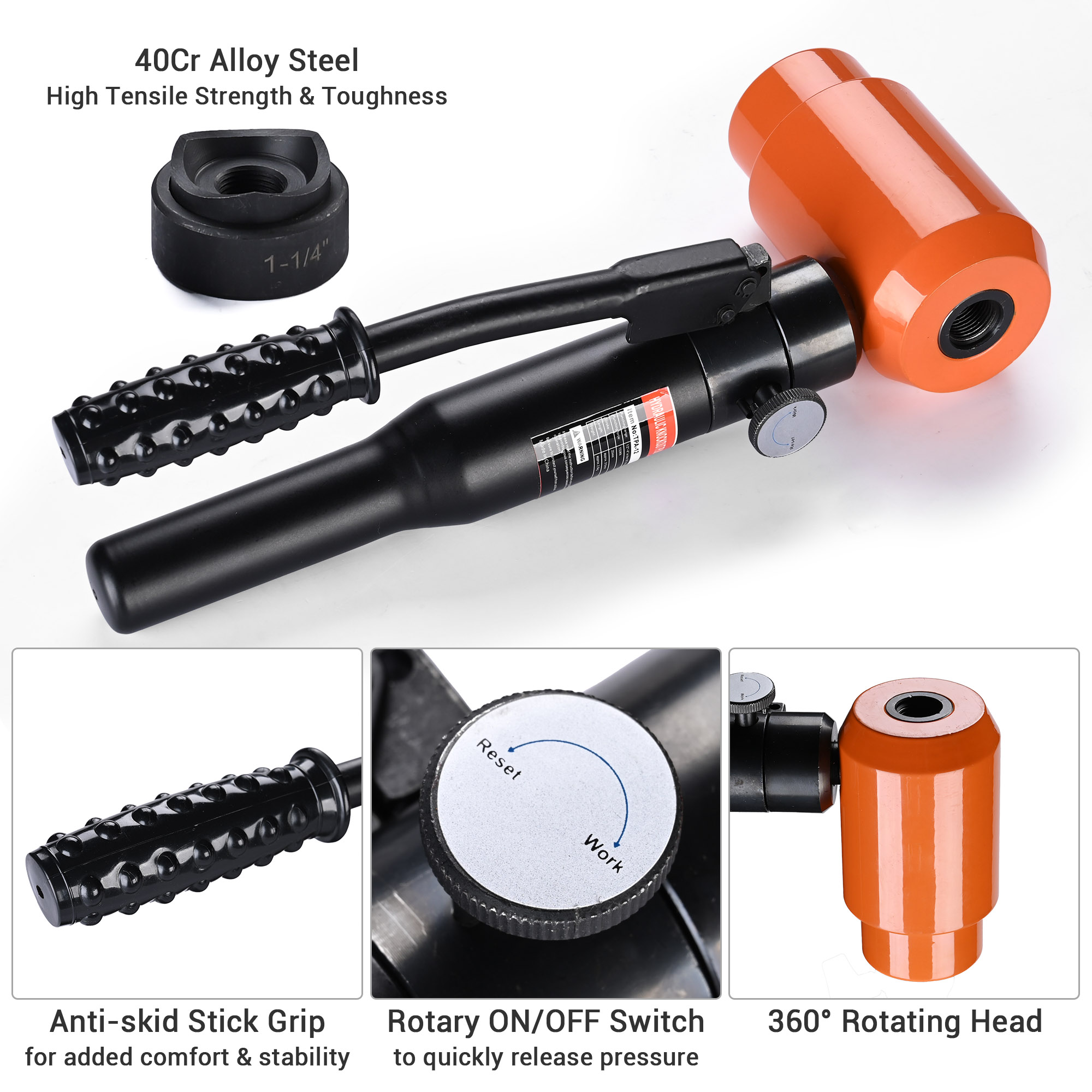 Yescom Hydraulic Knockout Punch Set Metal Hole Puncher Tool 15 / 10 Ton