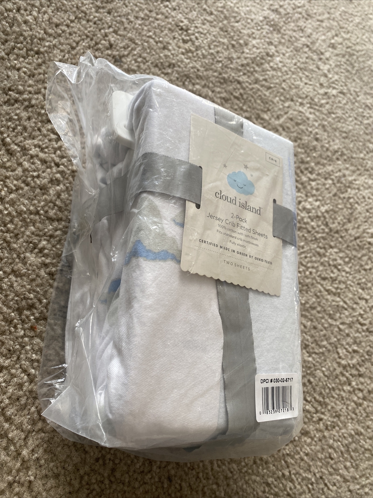 2 pk Cloud Island Jersey Fitted Crib Sheets White/Cloud Print Solid Lt Blue