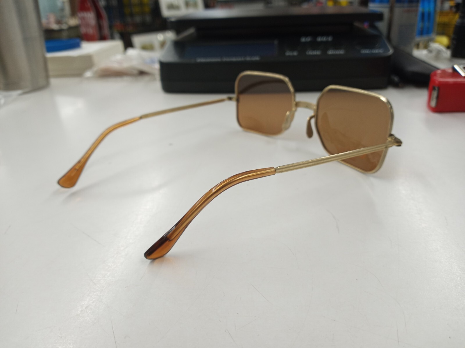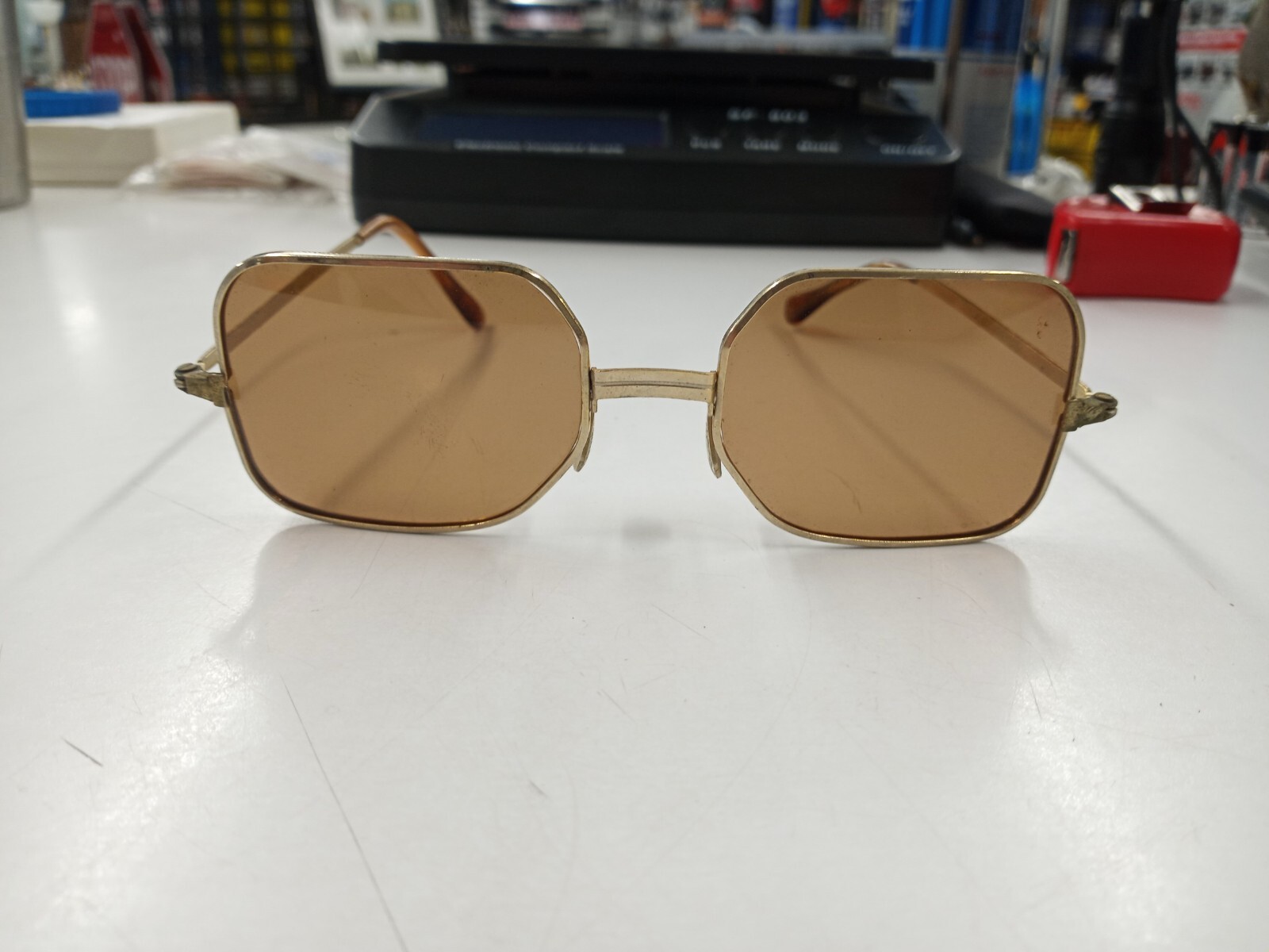 как выглядит Vintage Foster Grant FF77 Geometric Sunglasses. Gold With Brown Lenses фото