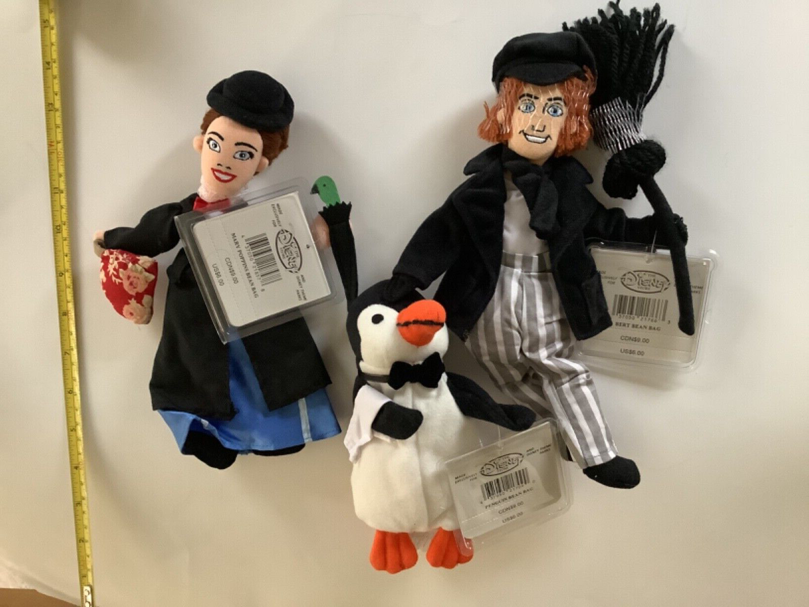 DISNEY MARY POPPINS BEAN BAGS w/ PROTECTED TAGS LABELS Mary Bert Penquin Fox