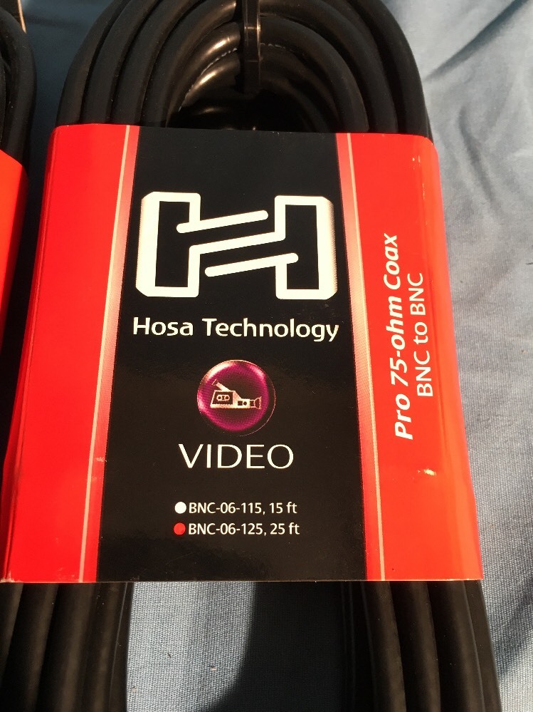• 2 NEW Hosa BNC 75-Ohm 25ft Coax Cable BNC-06-125