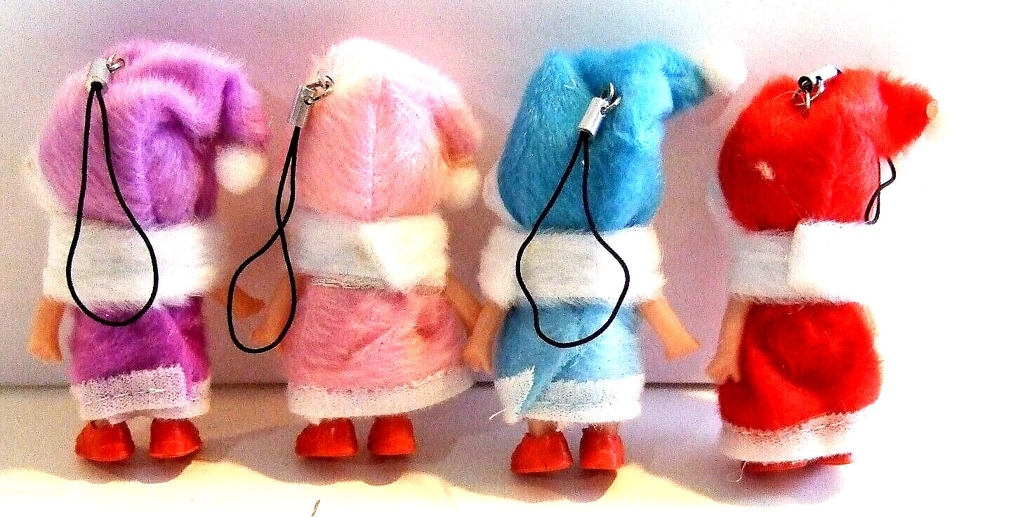 Lot of 4 Plastic Dolls For Phone, Purse, Backpack Charm Strap - NWOT 4