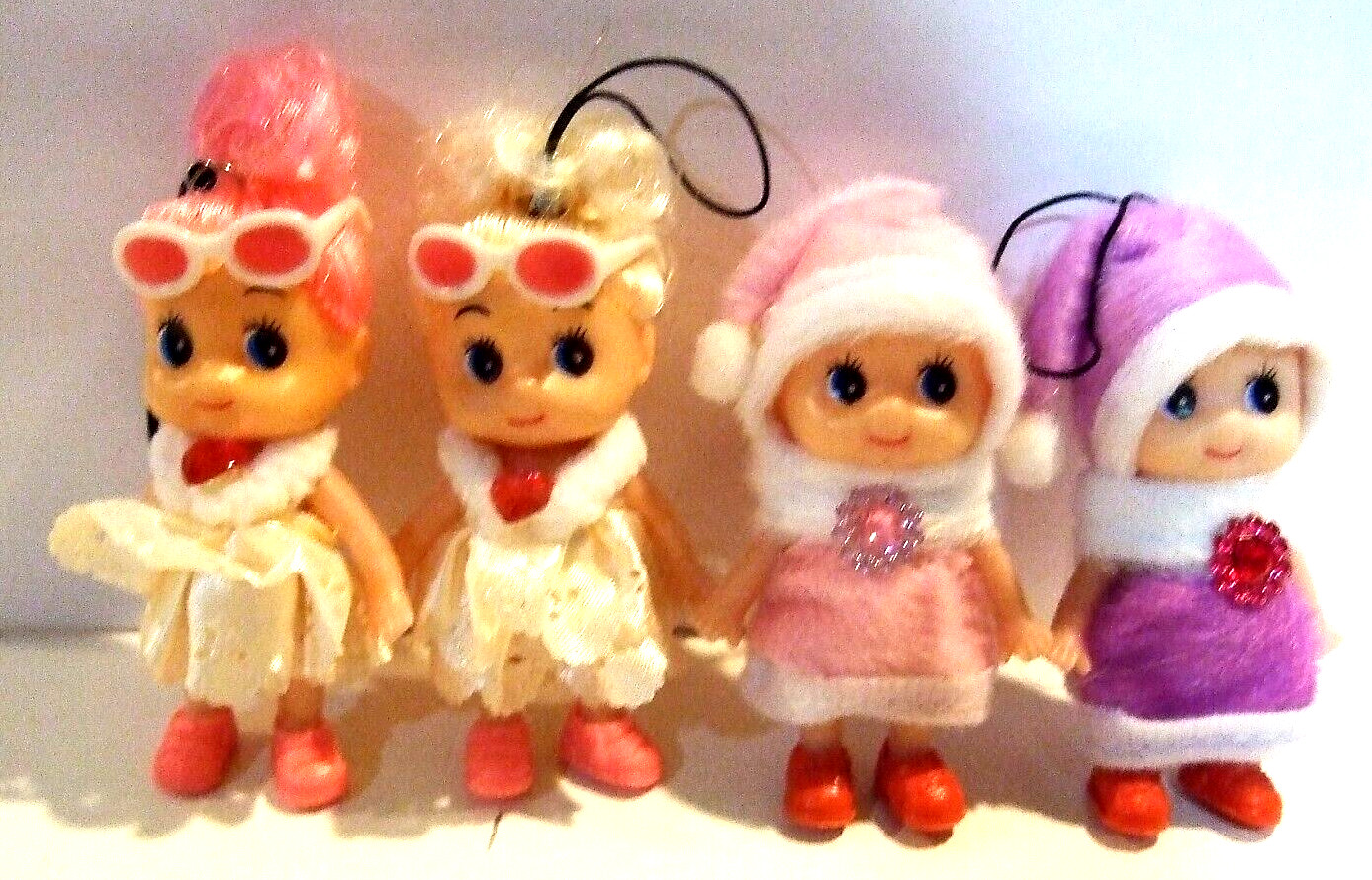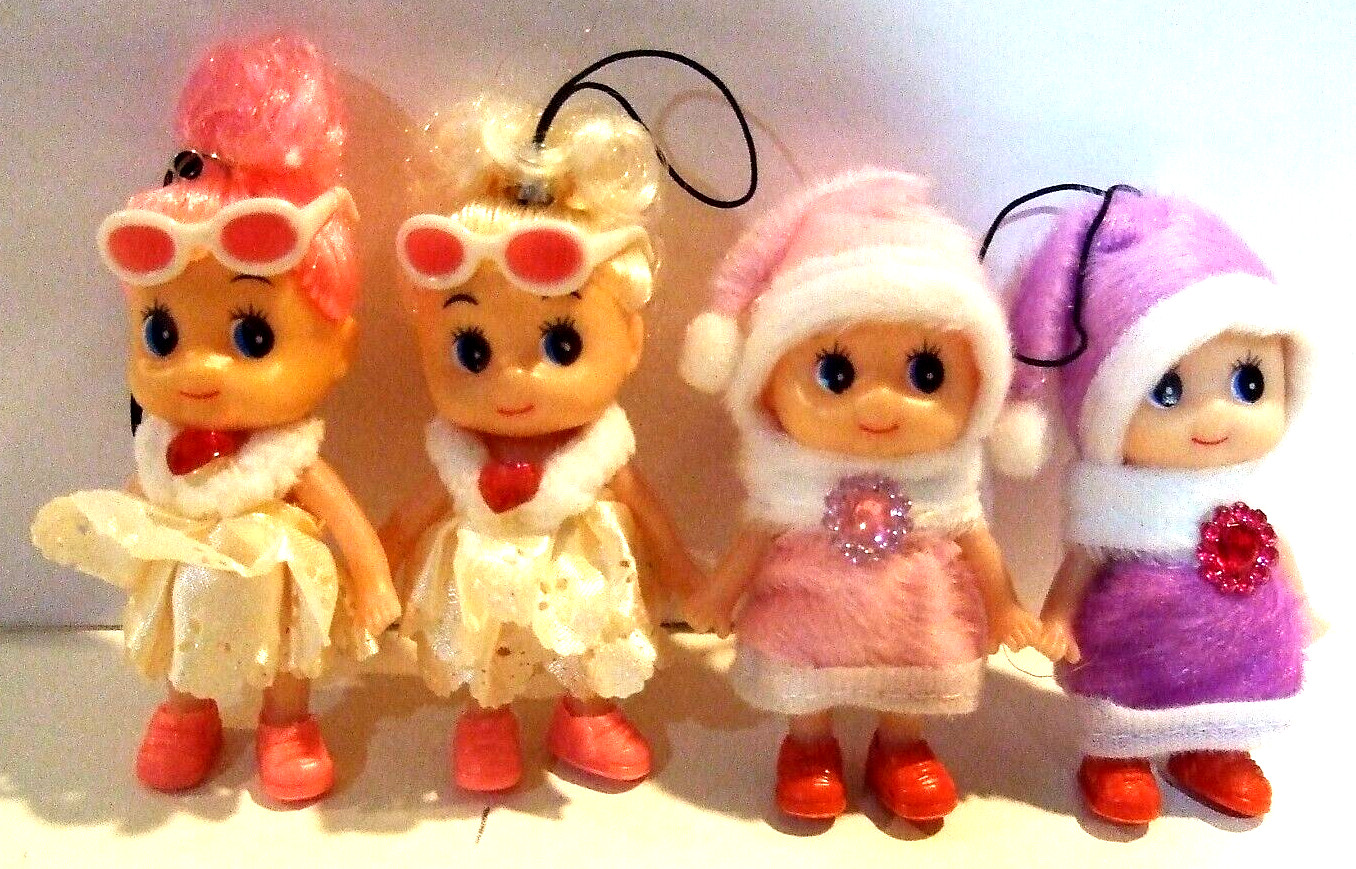 Lot of 4 Plastic Dolls For Phone, Purse, Backpack Charm Strap - NWOT 13