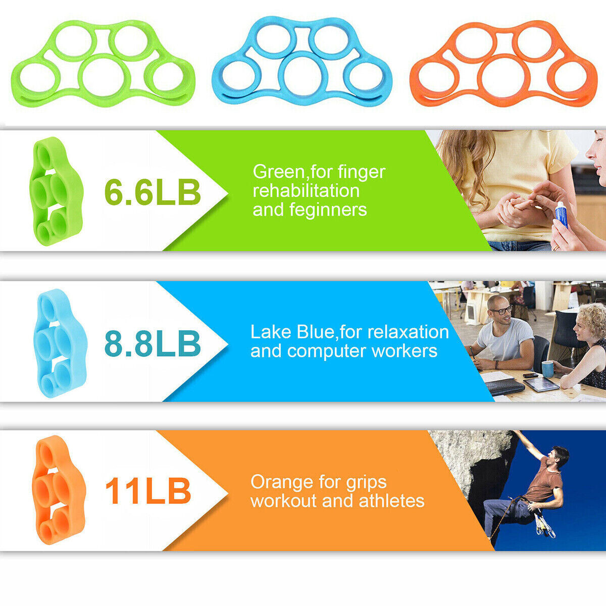 как выглядит 3Pc/Kit Finger Exerciser Strengthener Wrist Forearm Grip Trainer Resistance Band фото