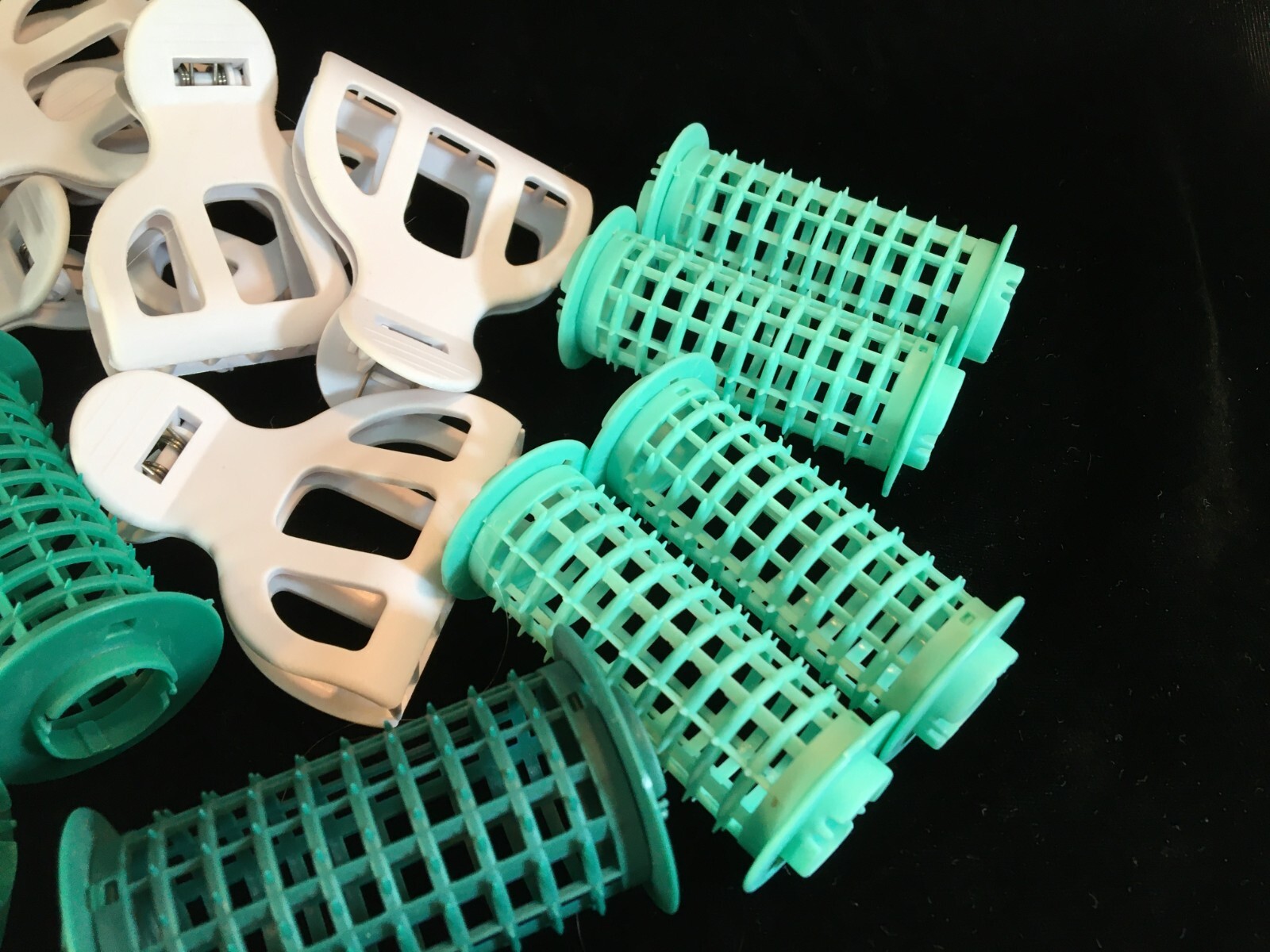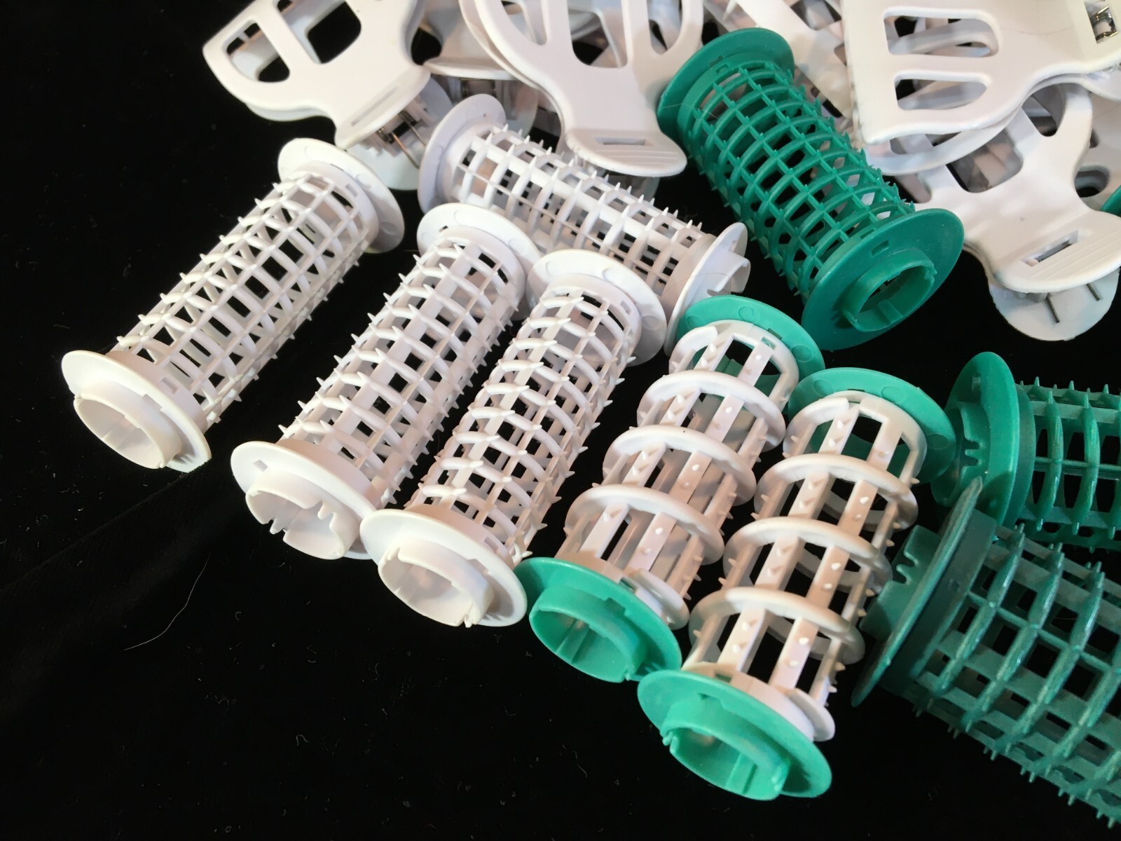 Vintage 16 Assorted Green White Curlers w/15 White Spring Clips