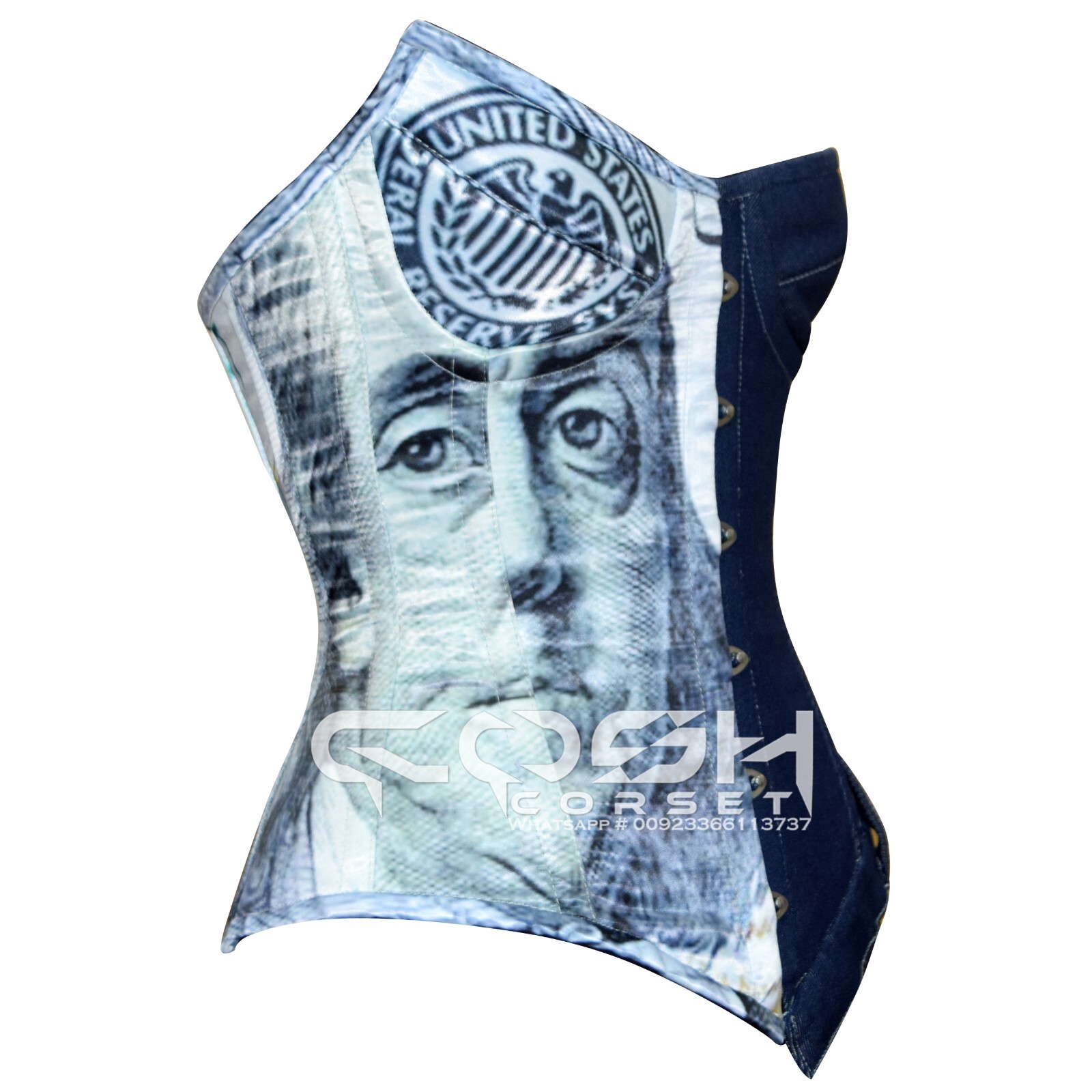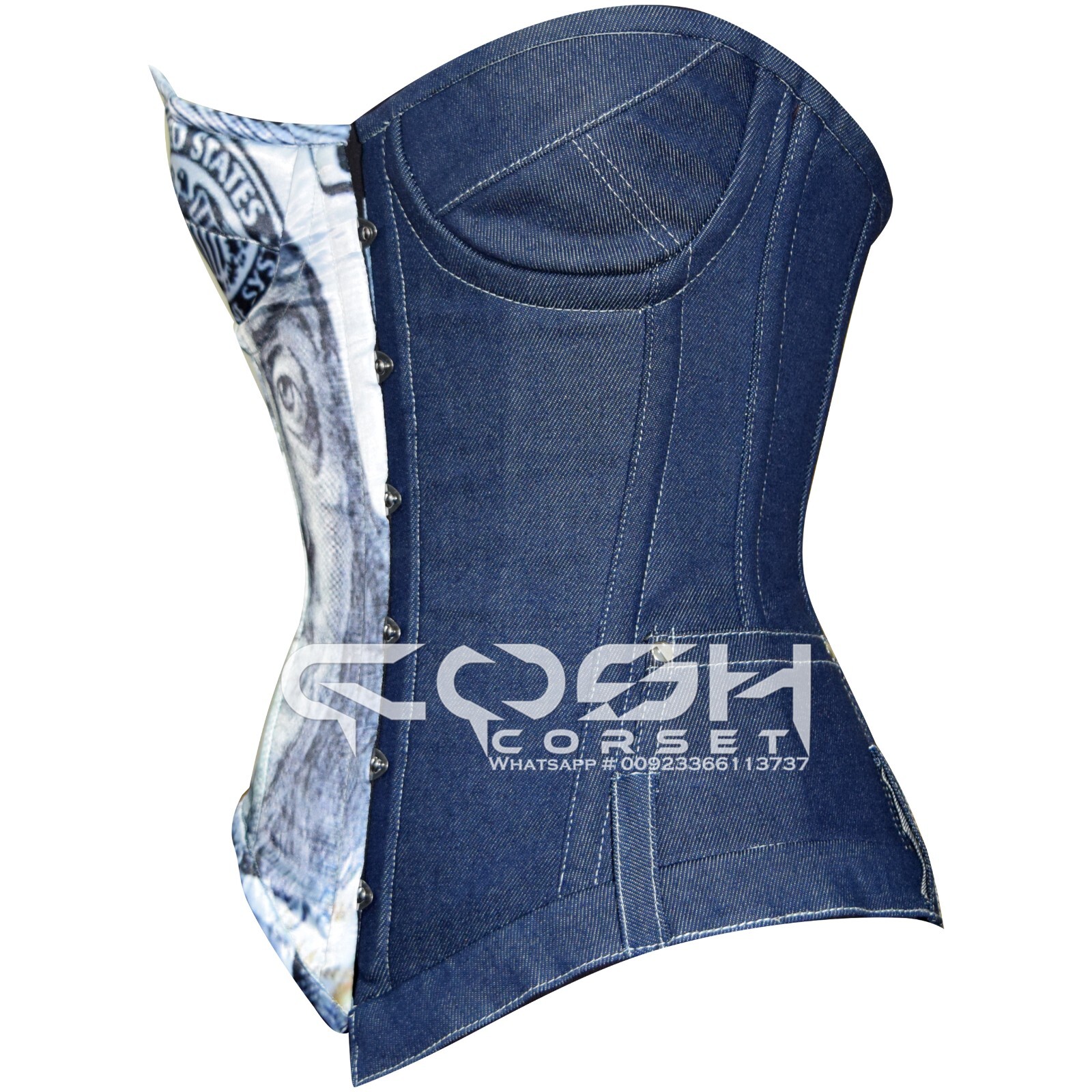 Steel Boned Polyester Cotton Overbust Dollar And Denim Made Corsets