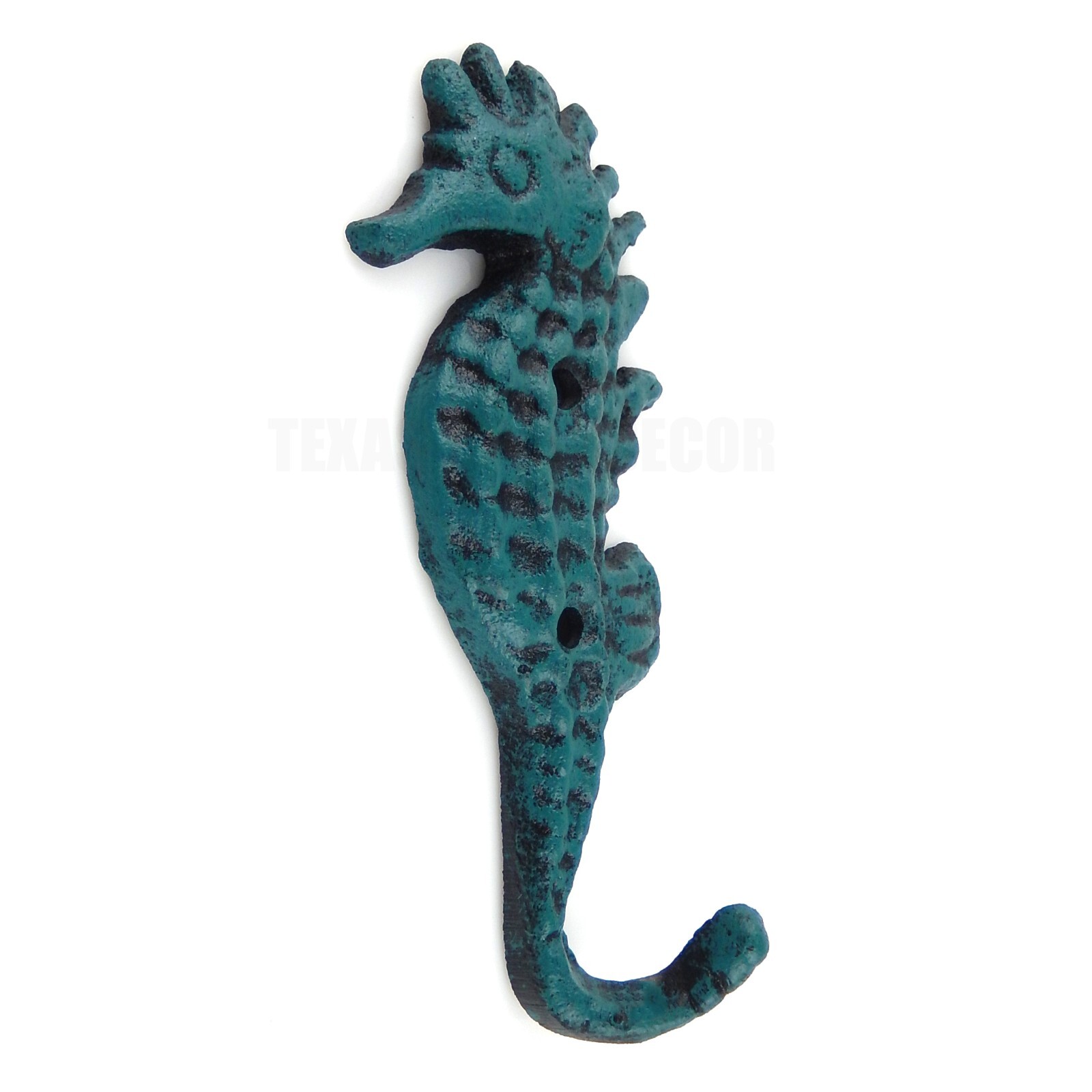 Cast Iron Seahorse Wall Hook Nautical Coat Towel Key Hanger Blue Teal