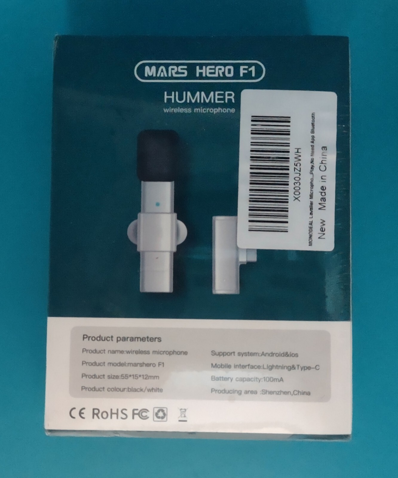 Mars Hero F1 Hummer Wireless Microphone. Black / Type-C Lighting NEW AND SEALED.