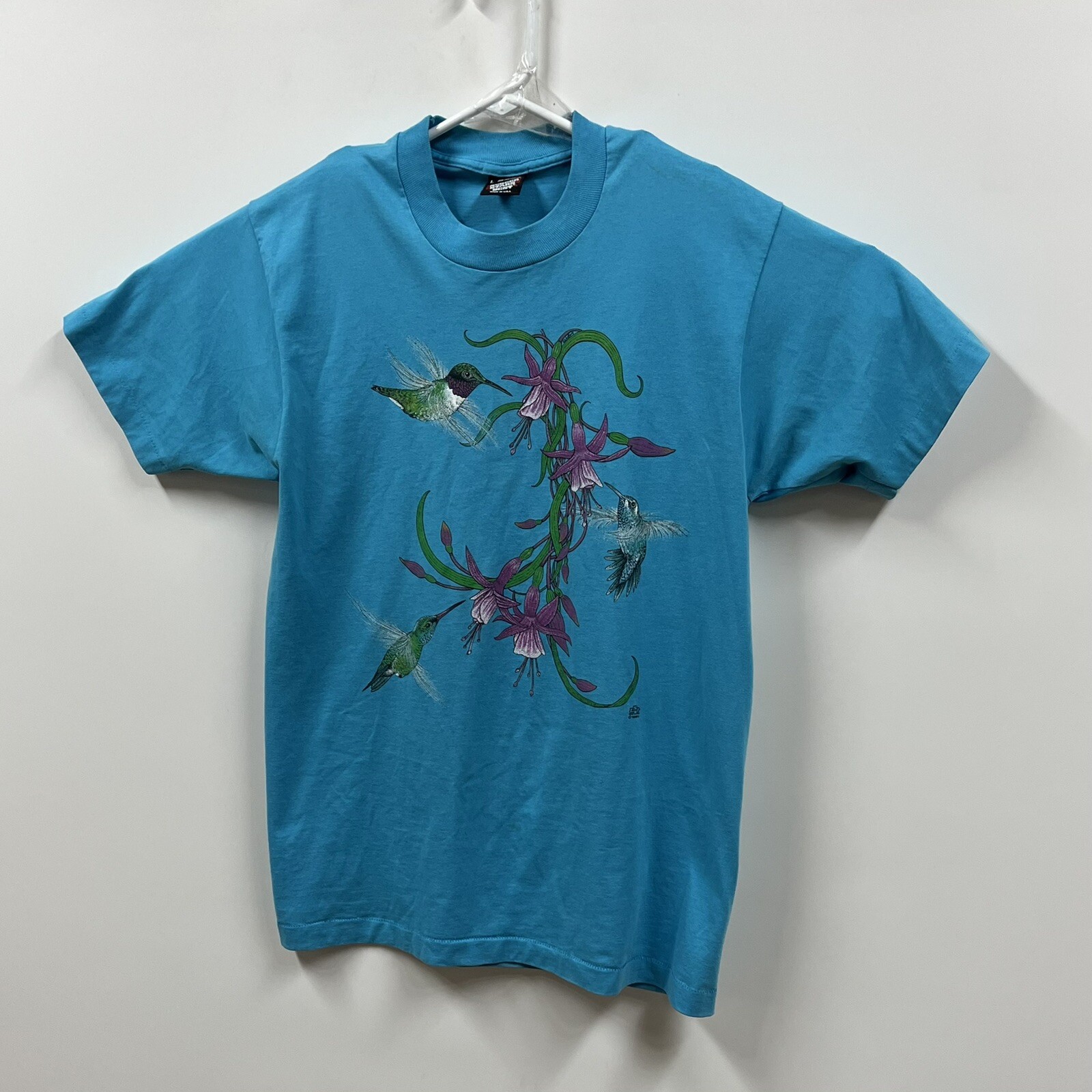 Vtg hummingbird shirt womens large blue short sleeve single stitch