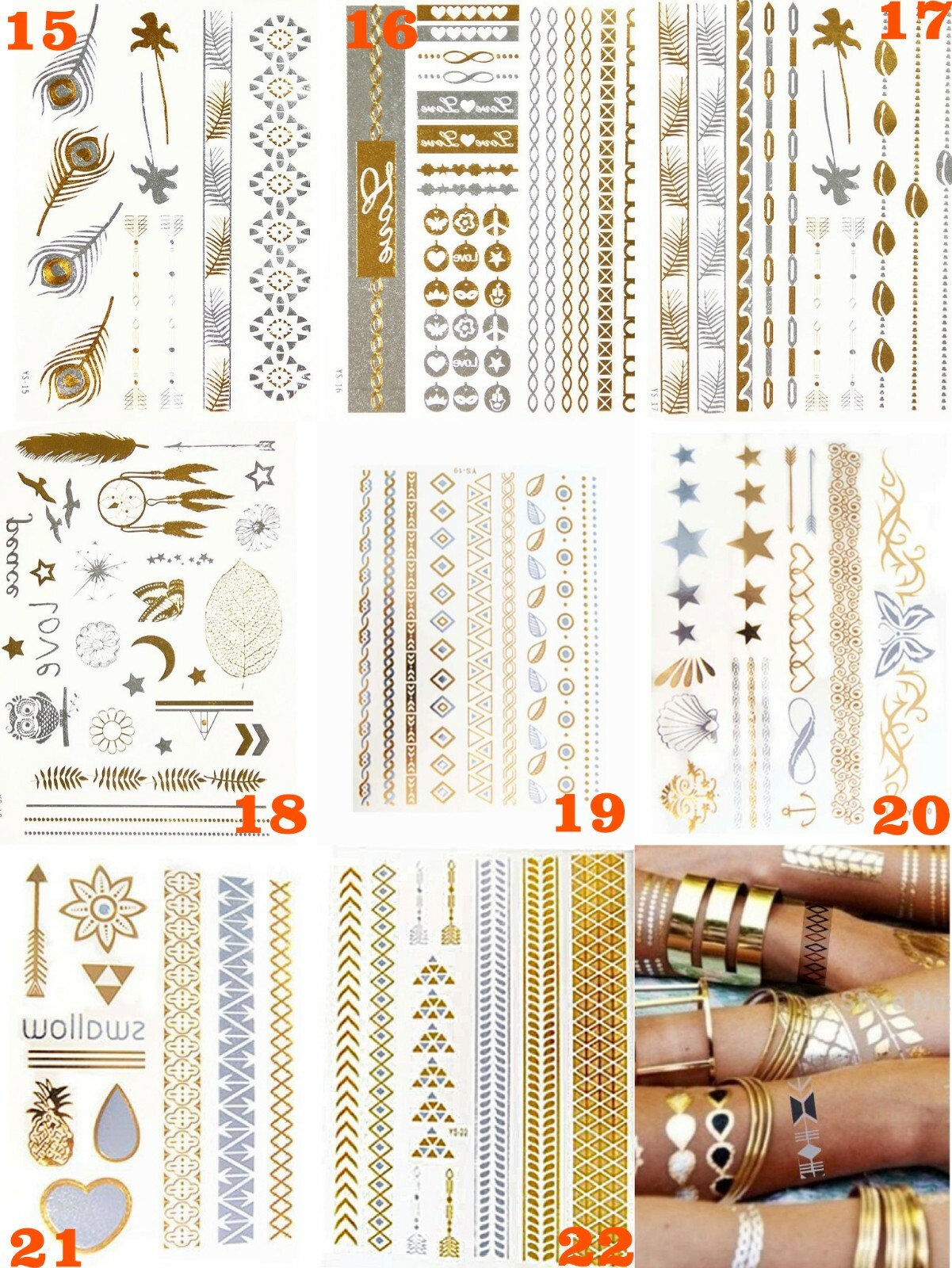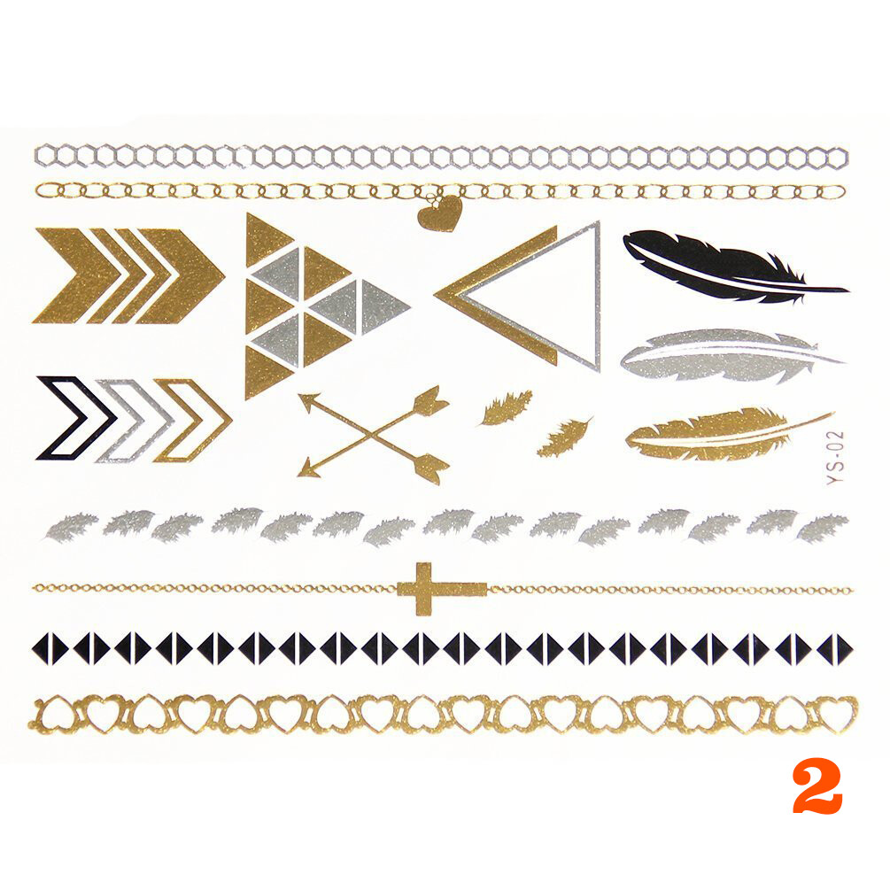 Waterproof Metallic Flash Temporary Fake Tattoo Sticker Gold Silver Body Art