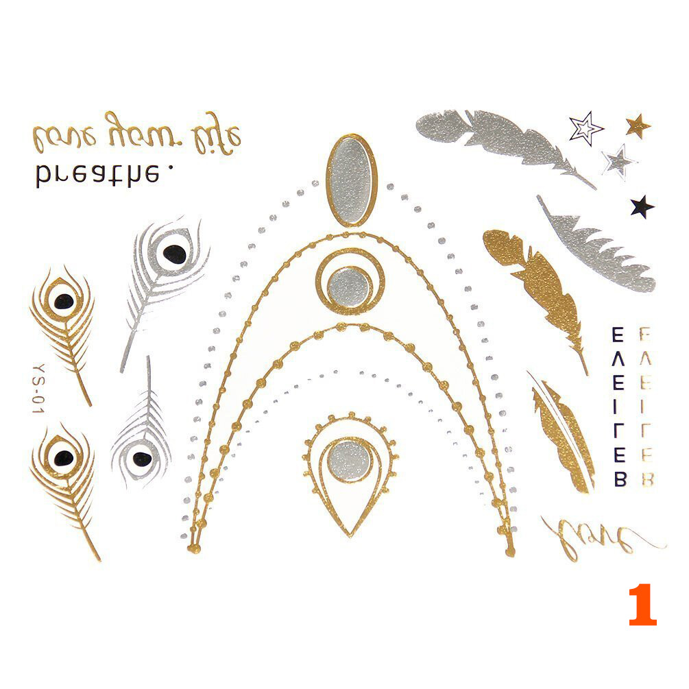 как выглядит Waterproof Metallic Flash Temporary Fake Tattoo Sticker Gold Silver Body Art фото
