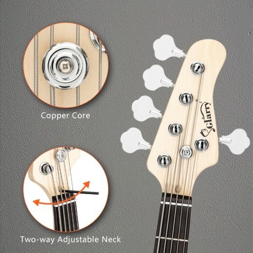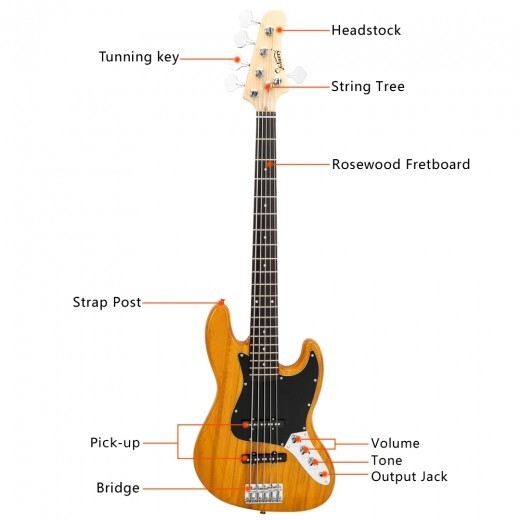 Glarry GJazz Electric 5 String Bass Guitar Full Size Transparent Yellow