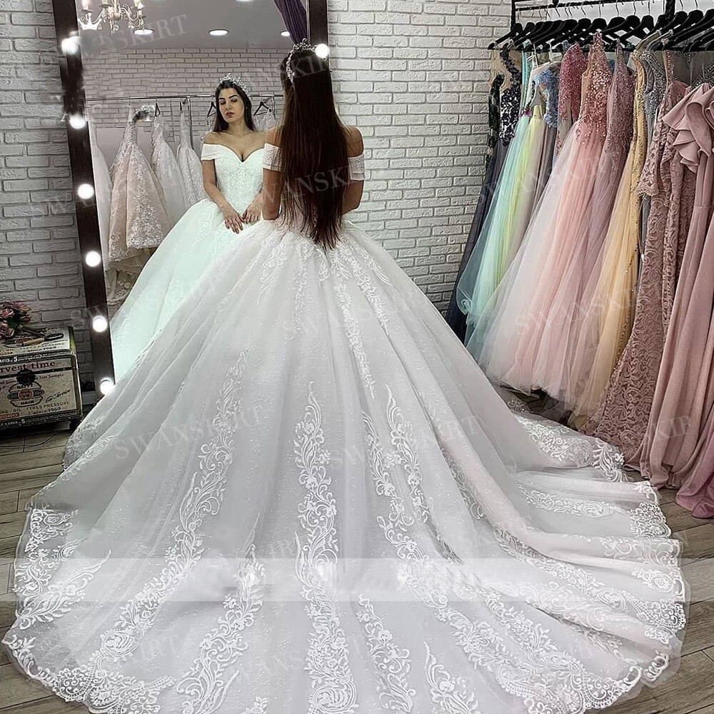 Elegant Lace Applique Wedding Dresses Off Shoulder Sweetheart Bridal Ball Gown