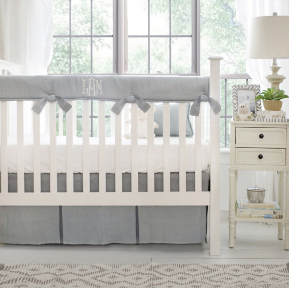 New Arrivals Grey Crib Bedding Washed Linen in Gray Collection