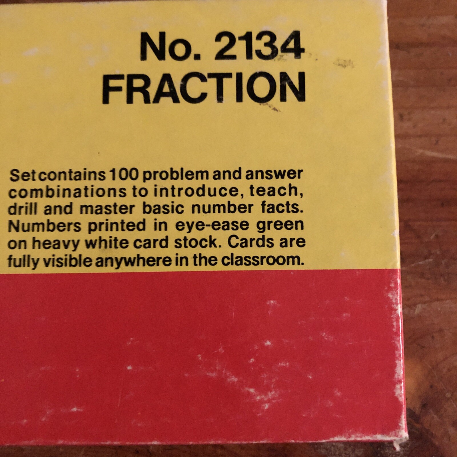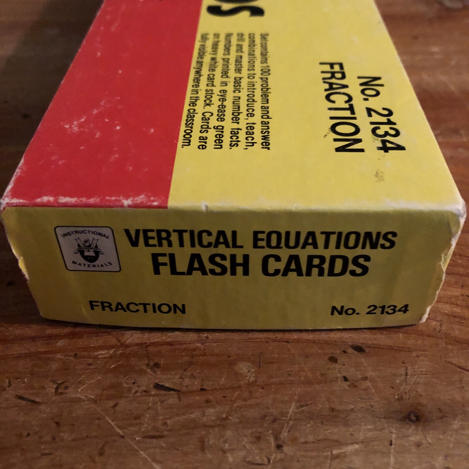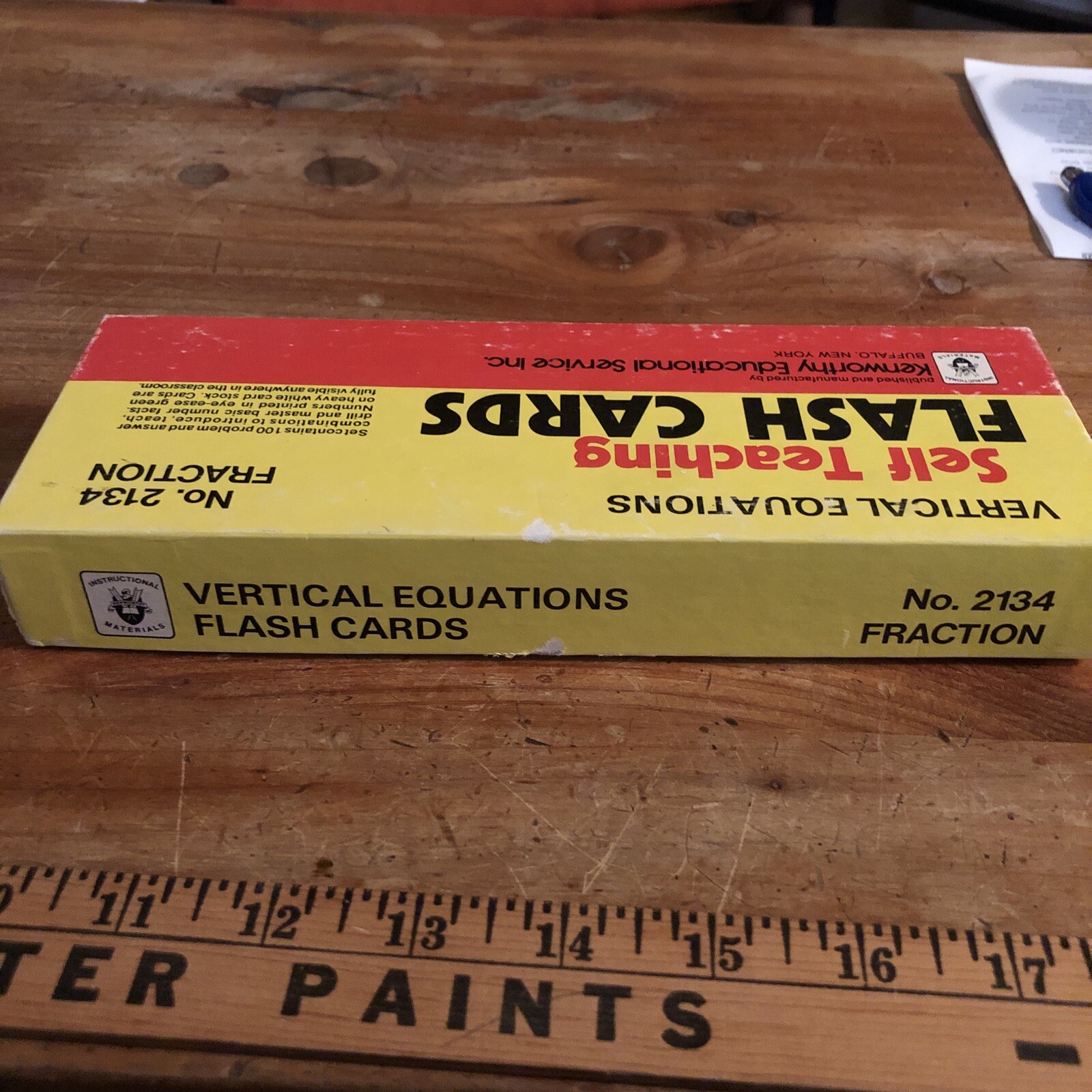 1955 KENWORTHY Self-Teaching 100 Fraction Flash Cards 2134 Vertical Equation