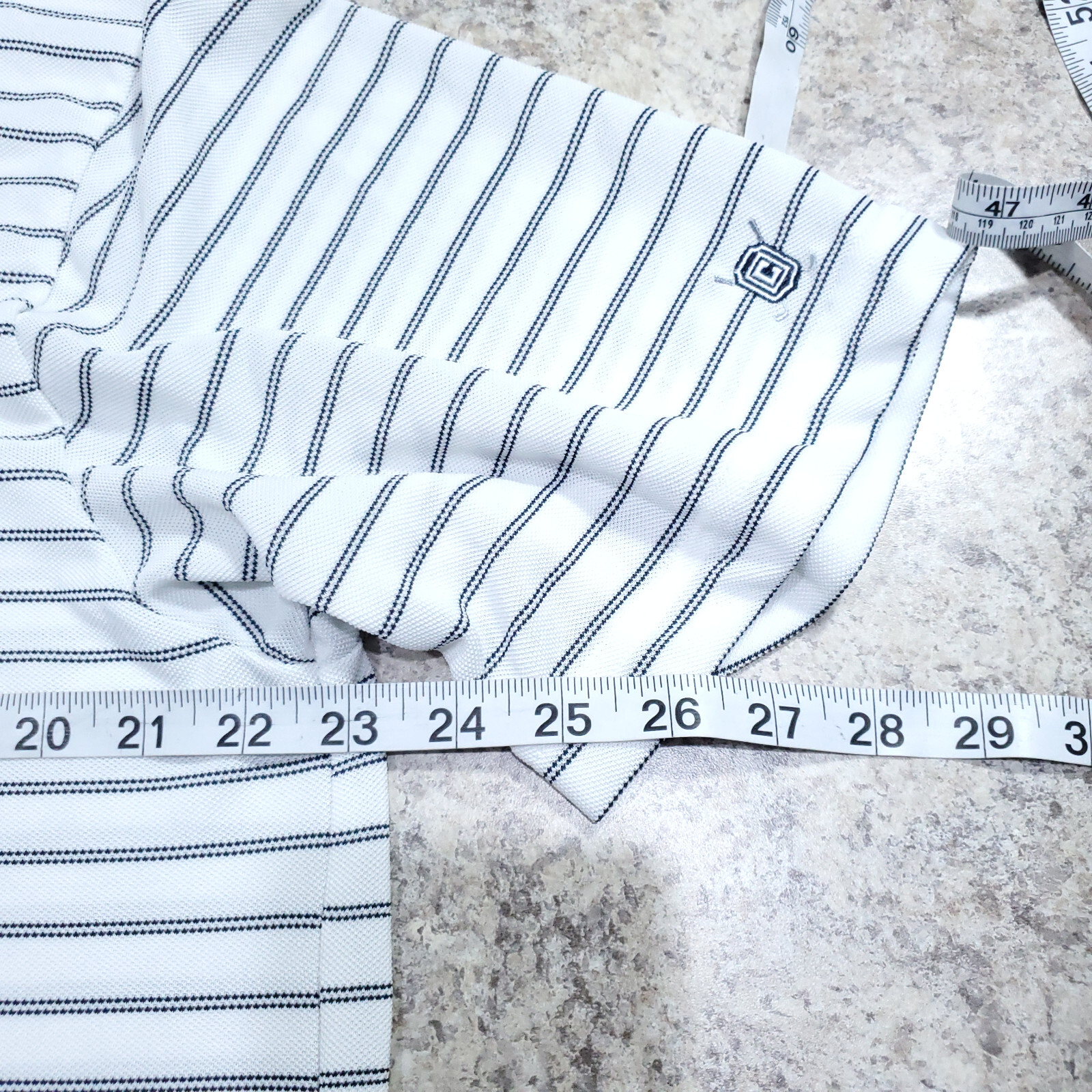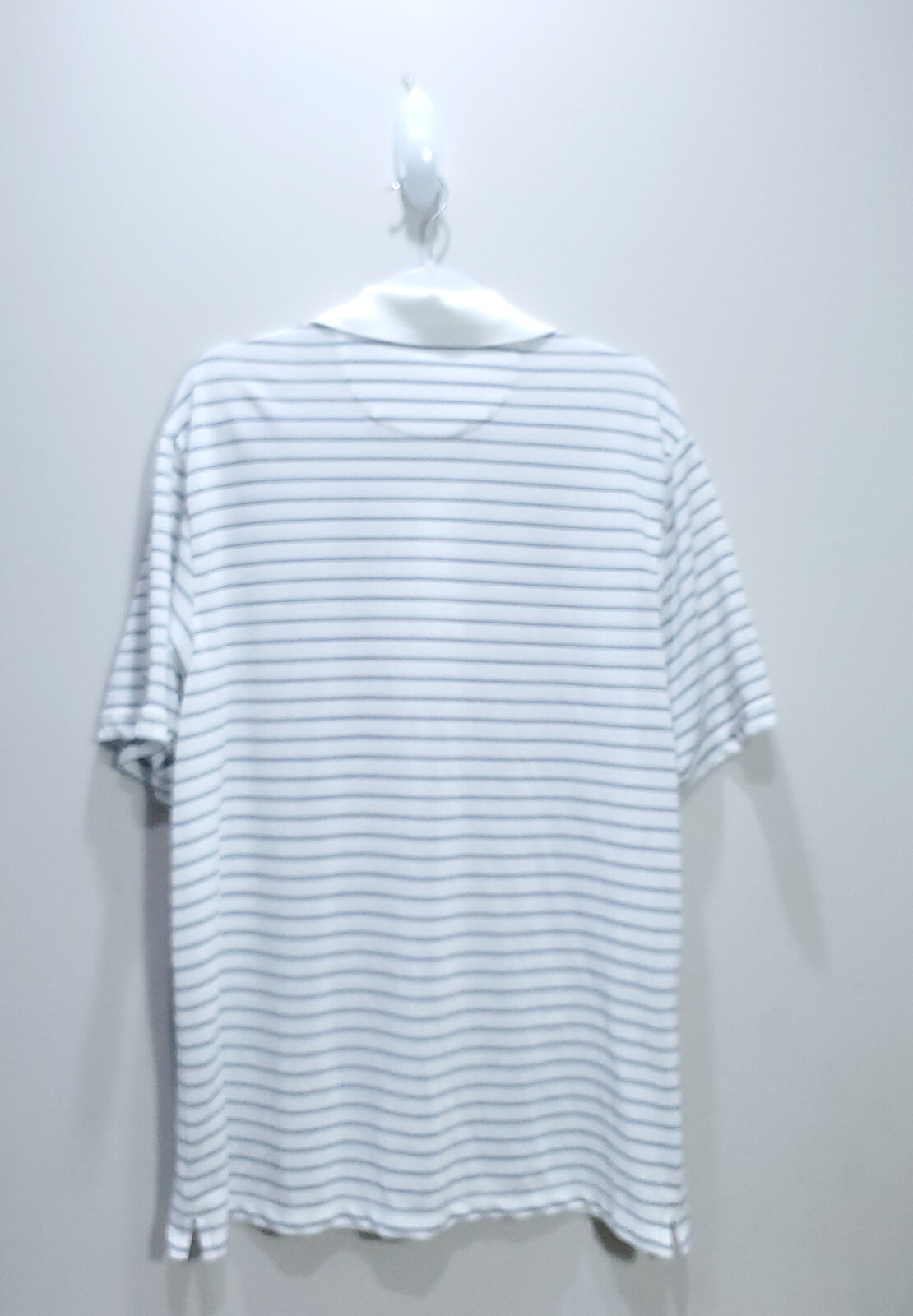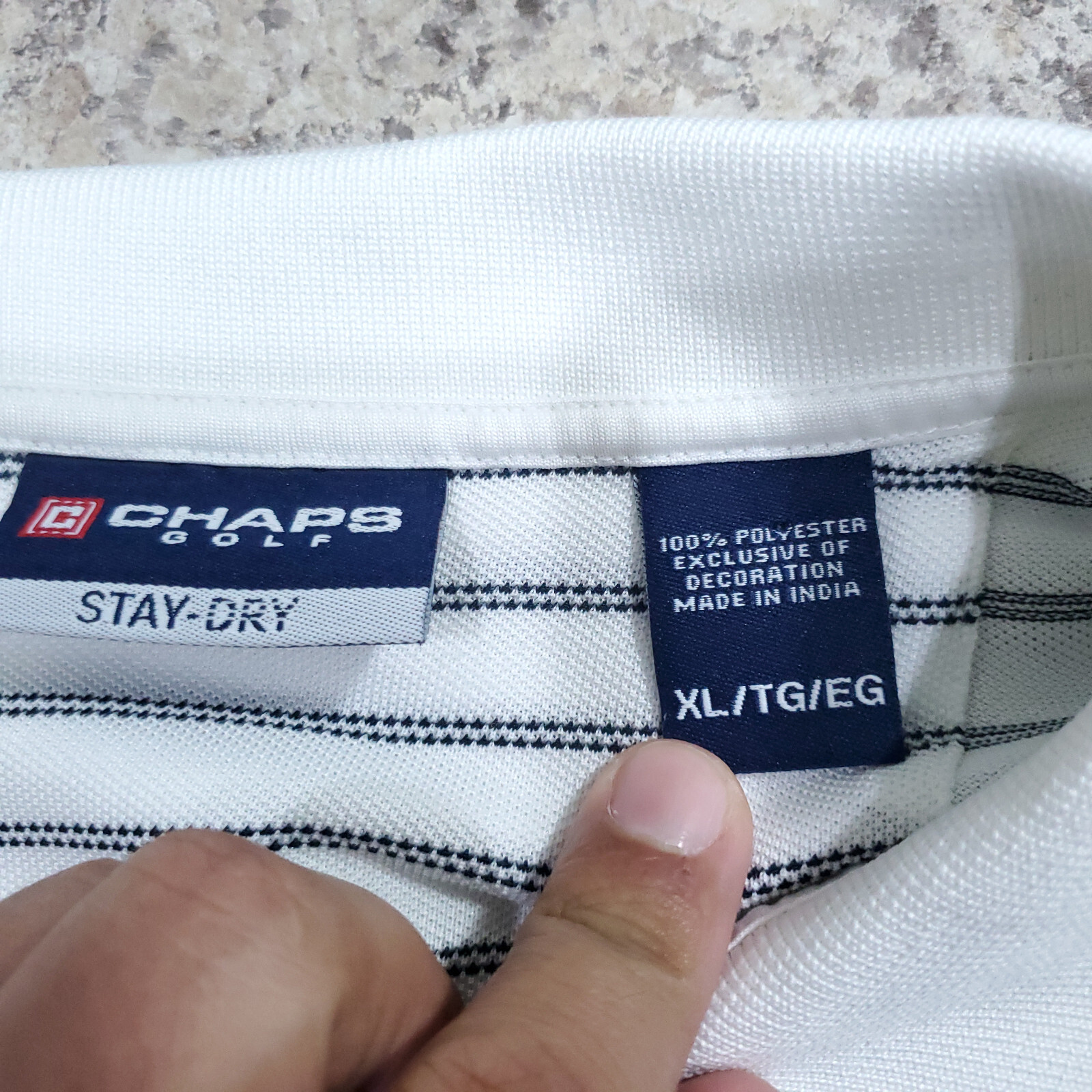 как выглядит Chaps Polo Shirt Mens Medium White Striped Microfiber Dry Golf Sports Outdoor M фото